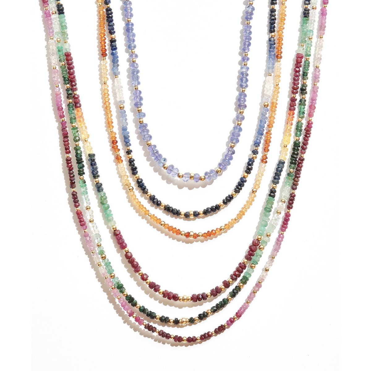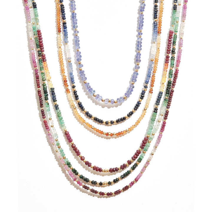 This necklace is made with natural sapphires and is strung on satin gold wire with a 14K gold-filled clasp and details. The sapphires are handpicked from India. It is a one-of-a-kind, handmade item from Canada.