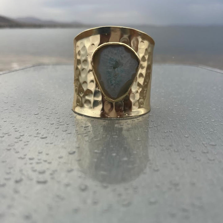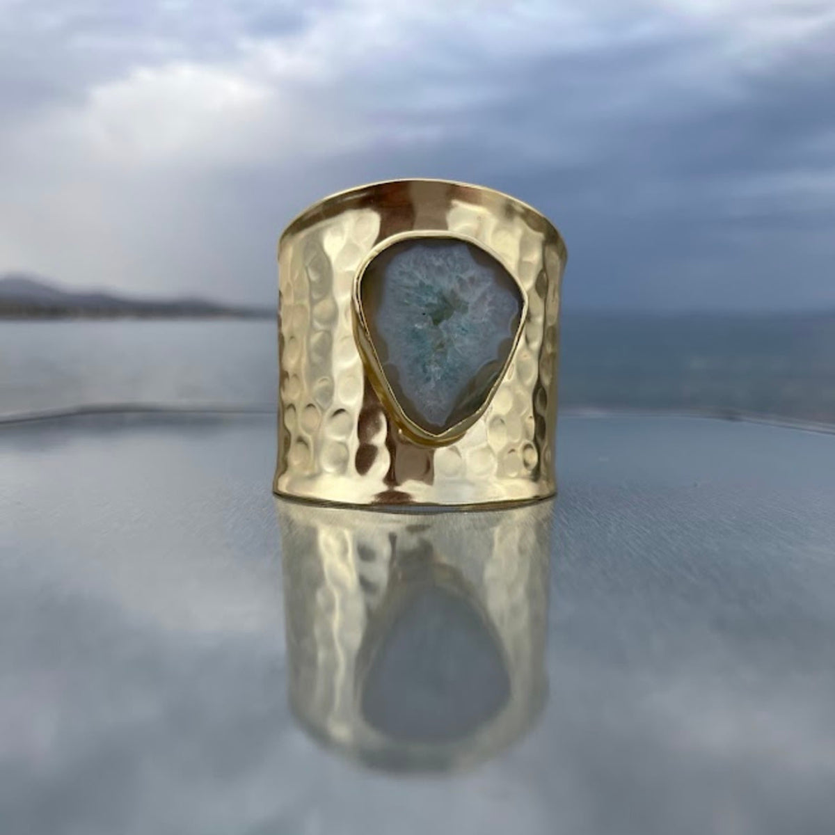 Drusy Agate Bangle - Cuff -One Of A Kind- Sea