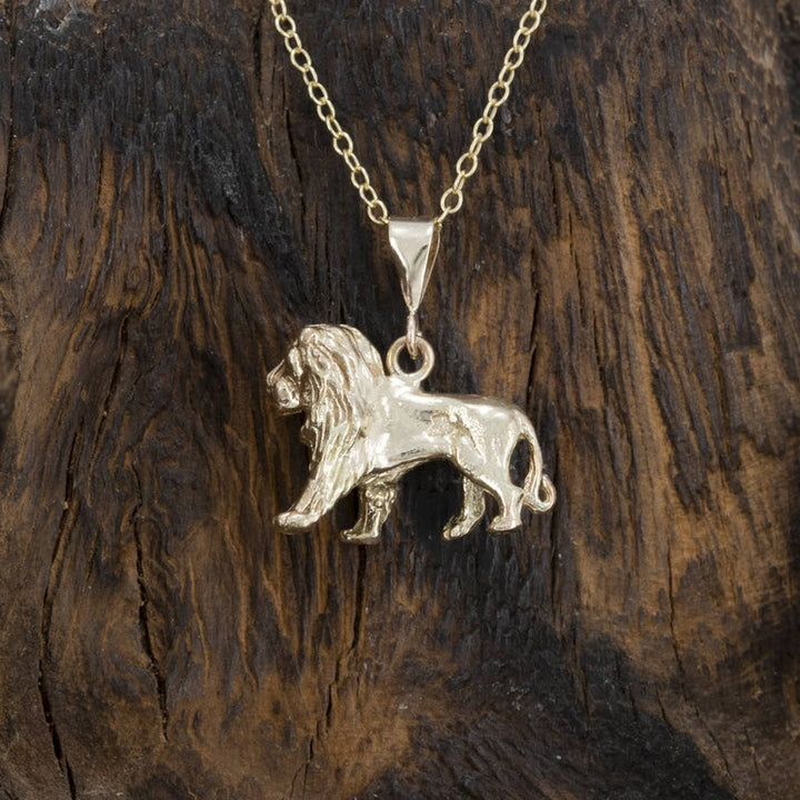 This Nine Carat Solid Gold Lion Pendant by Simon Kemp Jewellers is a miniature sculpture of the King of the jungle. This highly detailed, three-dimensional pendant sits beautifully on an 18-inch solid 9ct gold chain. The polished body contrasts with the detailed mane, making it a truly stunning and unique piece.