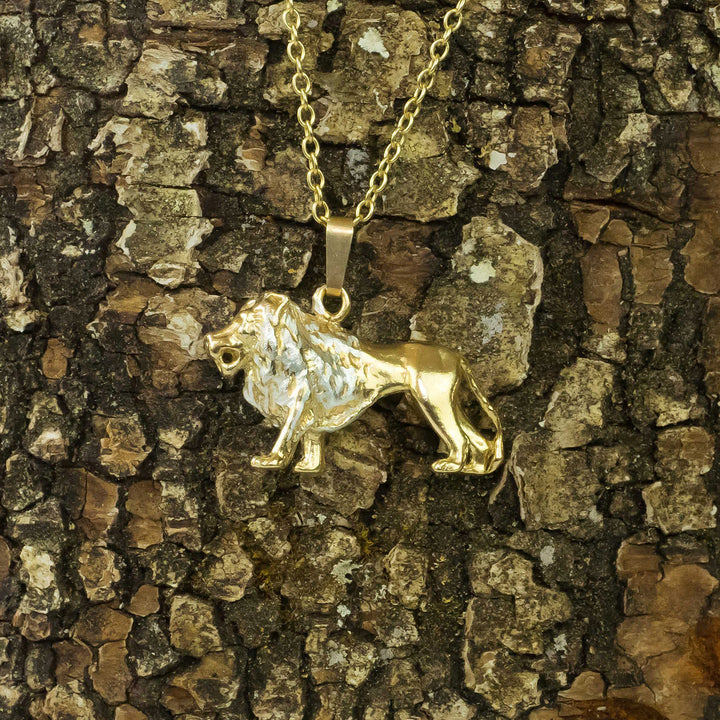 This Large Lion Pendant by Simon Kemp Jewellers is a stunning and majestic piece. It is a miniature sculpture that captures the essence of the king of the jungle. Crafted from solid sterling silver with an 18-carat gold layer, the gold is carefully removed from the mane to create a striking two-color contrast, bringing the regal lion to life.