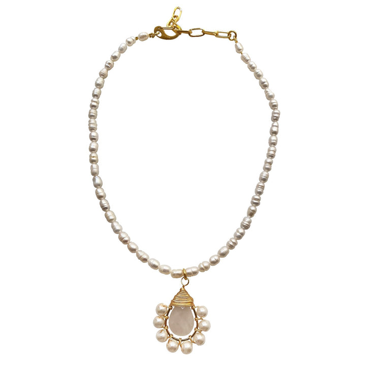 Handmade in Germany, this necklace is crafted from gold-plated stainless steel. It features freshwater pearls and a faceted gemstone. Each piece is unique.