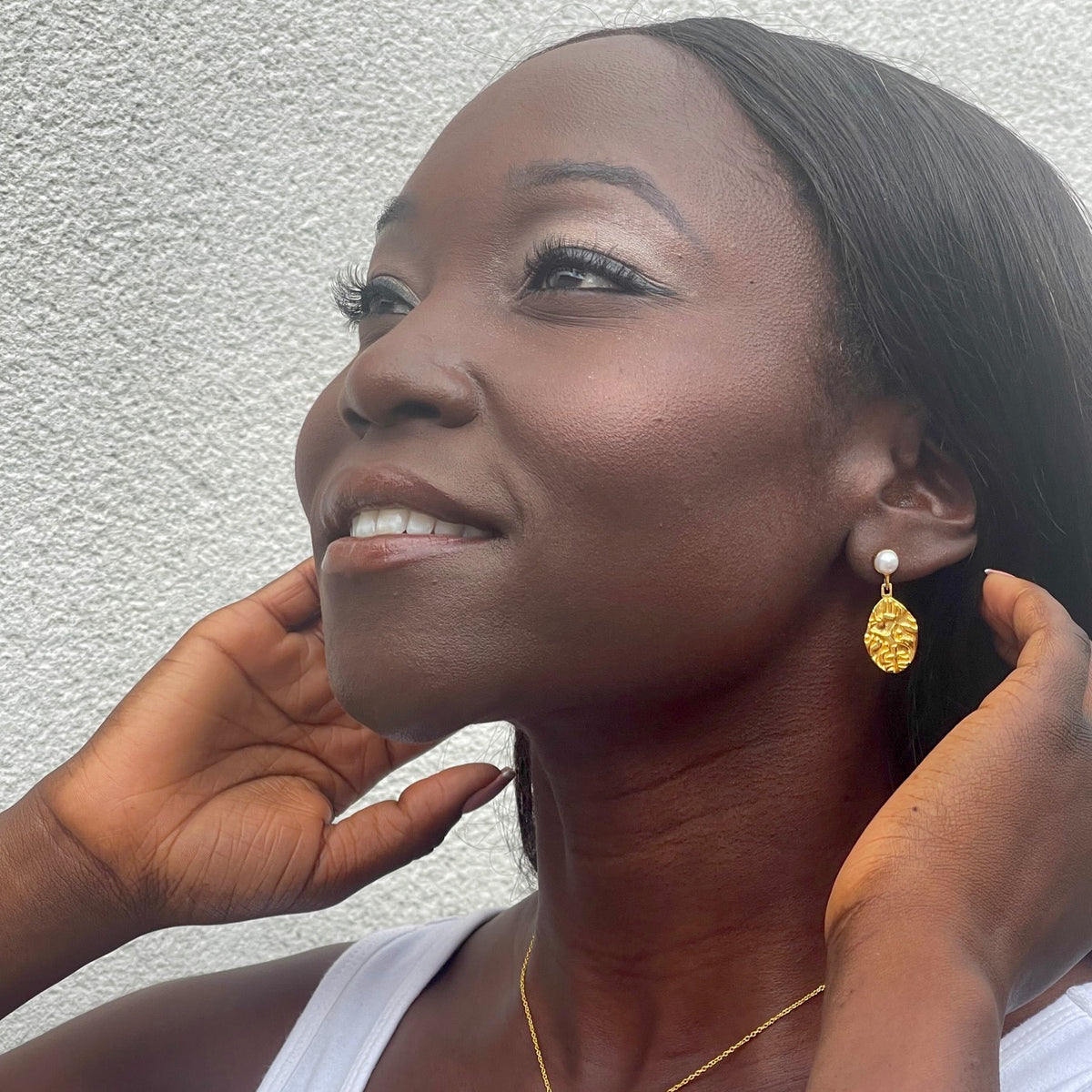 22Ct Gold Vermeil Ancient Coin & Pearl Earrings