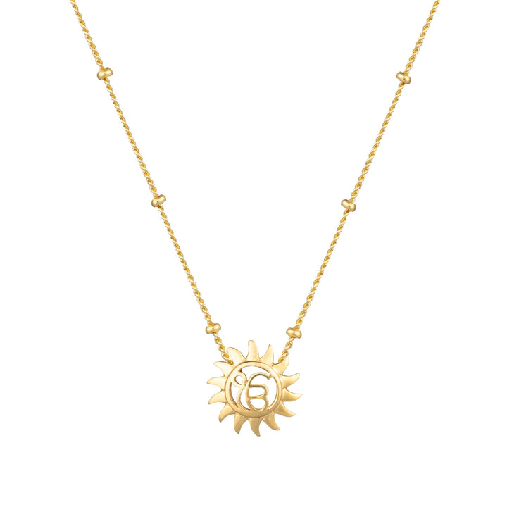 This Suraj Necklace by Sohavi is a meaningful and radiant piece inspired by the ancient Sanskrit word for sun. The pendant features the sacred Ik OanKar symbol, representing the one creator, set within a sun motif. It acts as a reminder of the radiant soul and a point of focus for gratitude. With an adjustable chain, it can be styled at different lengths, making it a beautiful and symbolic daily adornment.