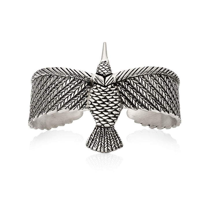 This Hummingbird Cuff Silver by Sophie Simone Designs is a beautiful and symbolic piece. The hummingbird, or Huitzilin, symbolizes the enjoyment of life and lightness of being. It represents adaptability and resilience. Handcrafted in Mexico City from sterling silver, this cuff is a meaningful accessory that encourages a playful and optimistic outlook on life.