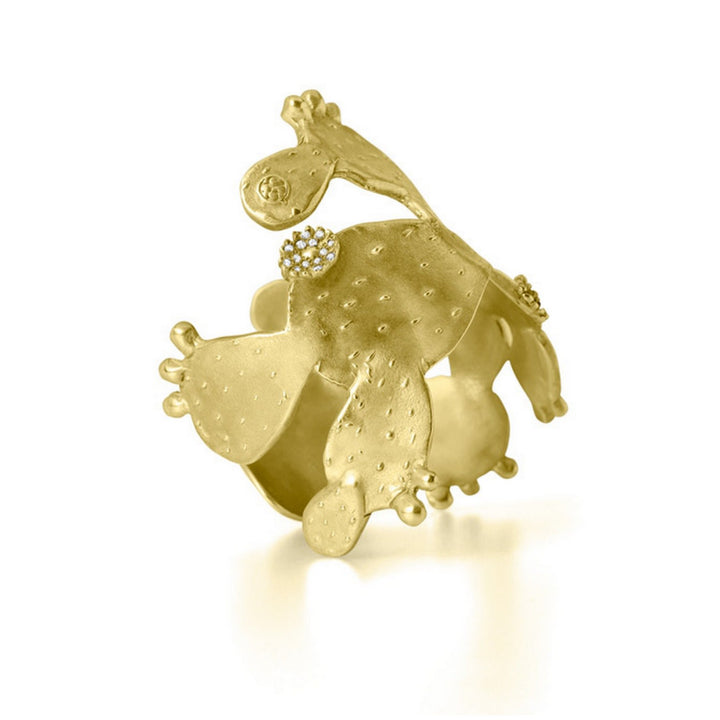 This Cactus Cuff With Swarovski by Sophie Simone Designs is a beautiful tribute to the mysteries and resilience of the desert. The piece captures the surprising beauty of flowers that bloom in arid lands, symbolizing hope and the heart's ability to "bloom and dance again" even in barren environments. This cuff has a bohemian and nature-inspired aesthetic, making it a powerful and meaningful accessory.