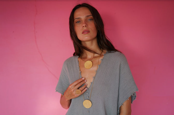 The Necklace Horizon by Sophie Simone Designs is part of the "HARAMARA" collection, inspired by the beauty and mysteries of the sacred ocean. This handmade necklace, which reflects the ocean looking back at us, invites you to wear it proudly as a symbol of respect and love for nature.