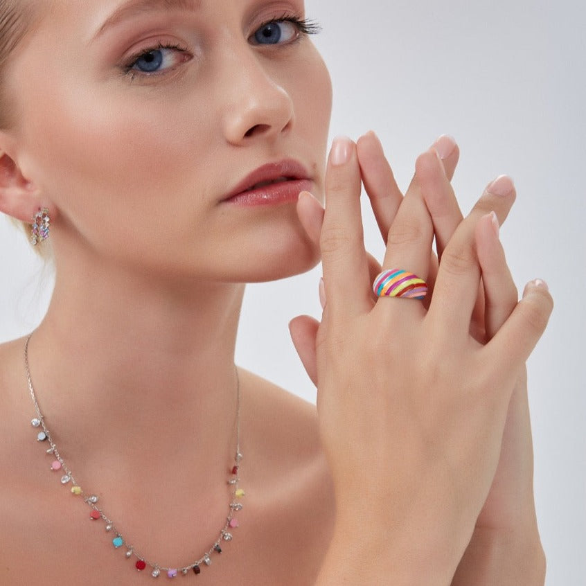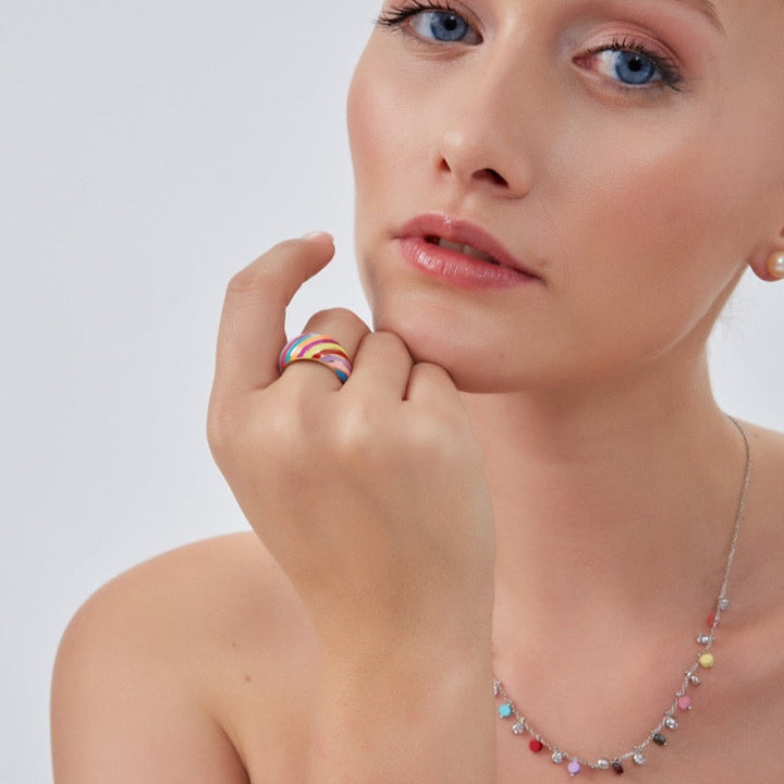 Enamel Rainbow Stripe Chunky Sterling Silver Ring