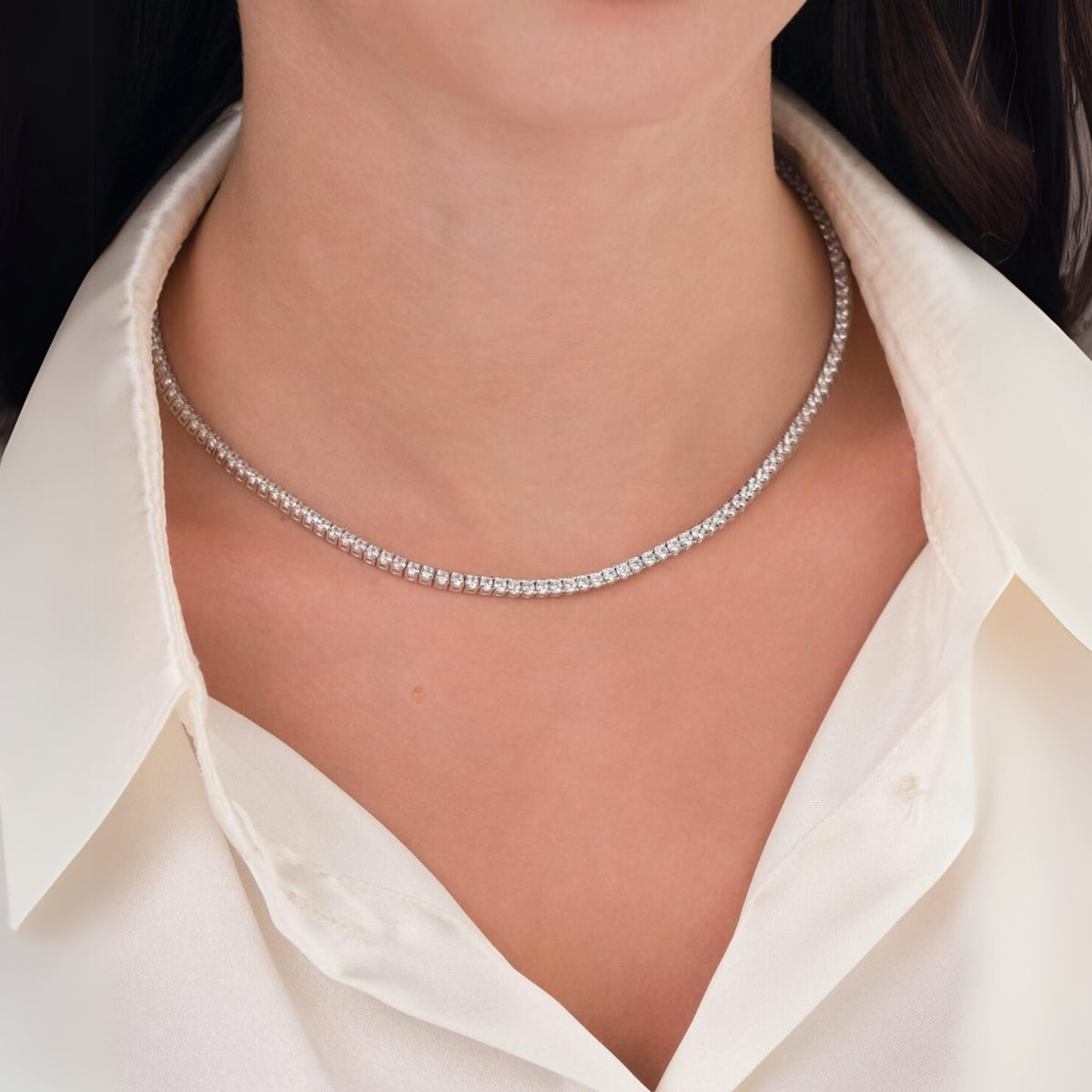 This Sterling Silver Large Tennis Necklace - 3Mm by Spero London is an elegant and graceful accessory. Made with high-quality sterling silver, this necklace is sure to shine and make a statement. It is a must-have for any jewelry collection.