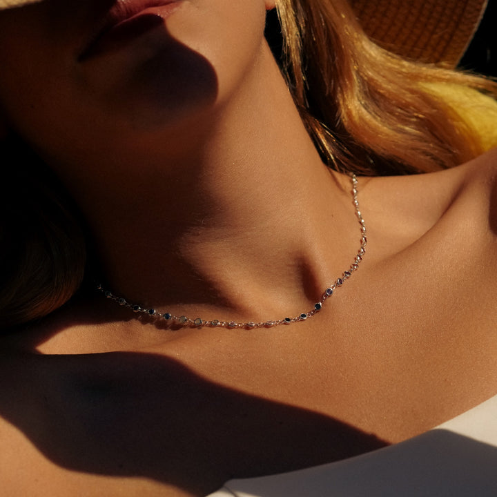 This Colourful Rainbow Jewelled Tennis Style Sterling Silver Chain Necklace & Bracelet Set by Spero London is a stunning and vibrant accessory that is sure to brighten up any outfit. The variety of colors in this rainbow-jeweled set makes it a perfect way to show off your fun and colorful style. It's a one-of-a-kind set that will add a beautiful sparkle to your look.