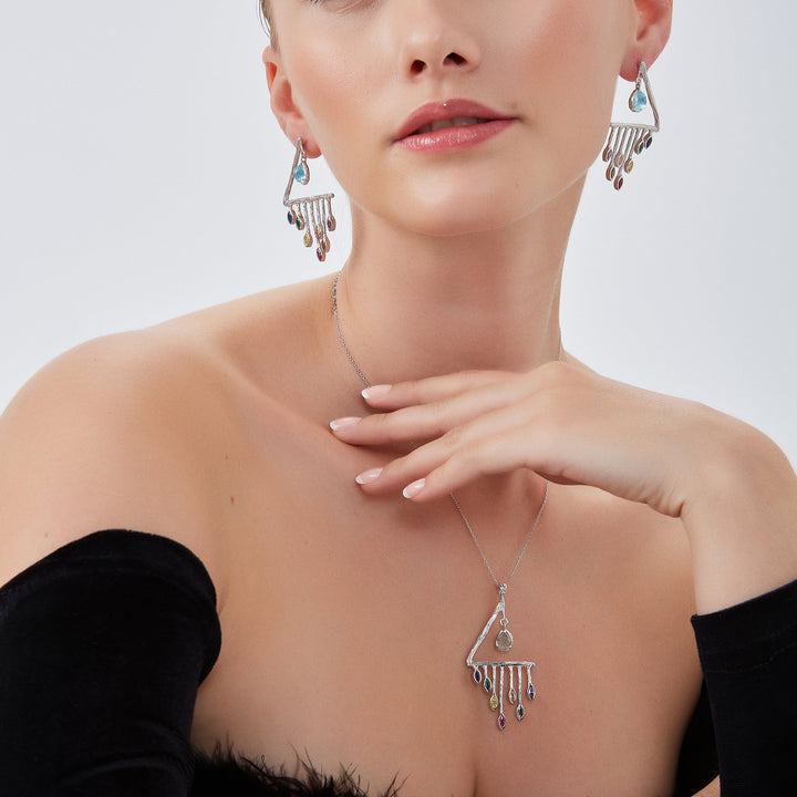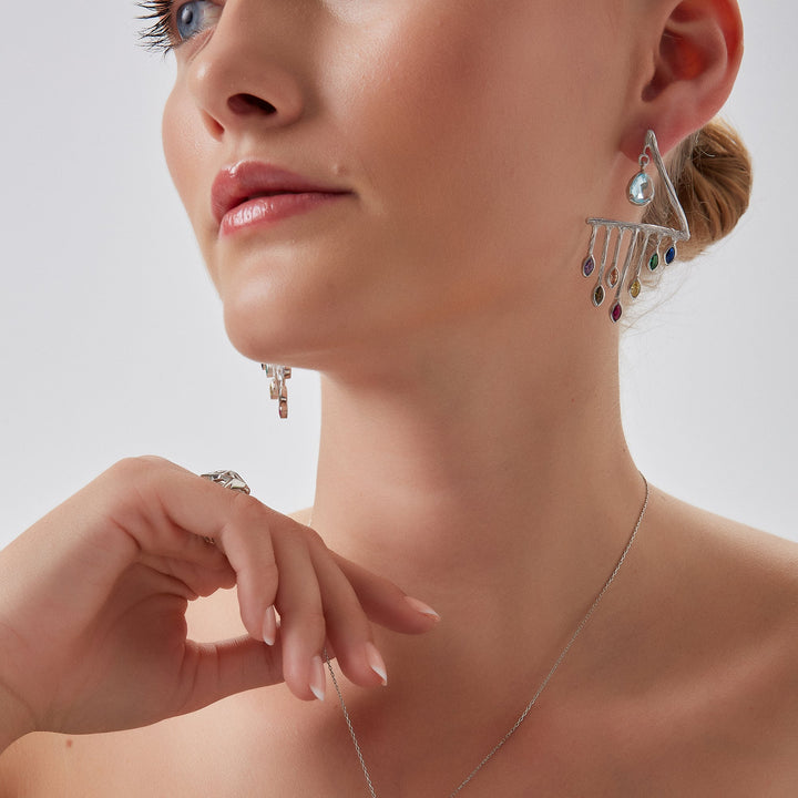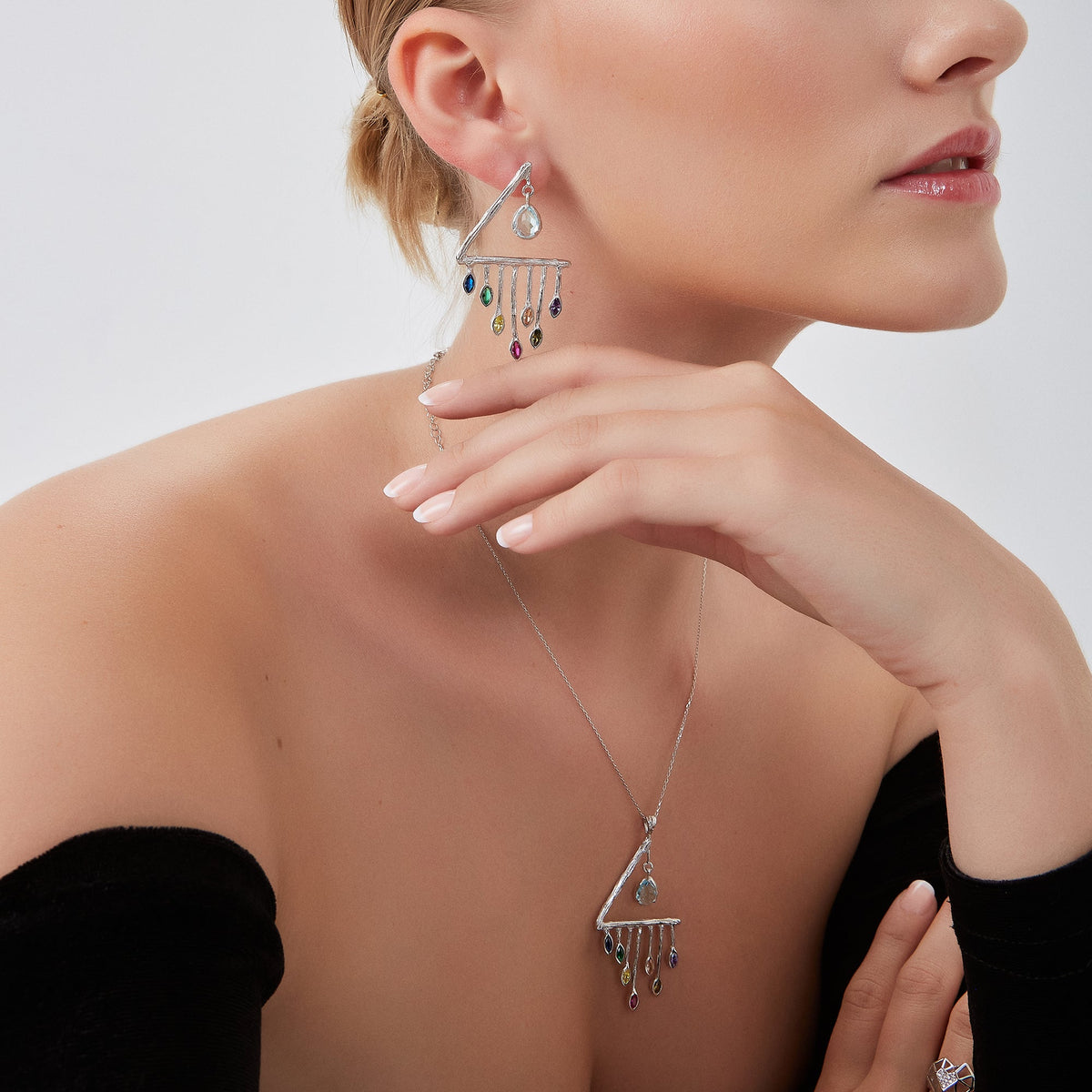 Colourful Rainbow Rain Drop Earring In Sterling Silver