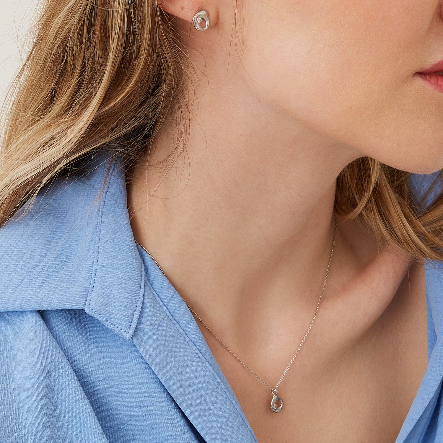This Dripping Molten Natural Textured Sterling Silver Authentic Pendant Necklace & Earring Set - Silver by Spero London is a beautiful and exclusive statement set. Crafted from sterling silver, the natural dripping molten texture creates a stunning and unique aesthetic. This set is perfect for making a statement on any special occasion, adding an element of sophistication and artistry to your wardrobe.