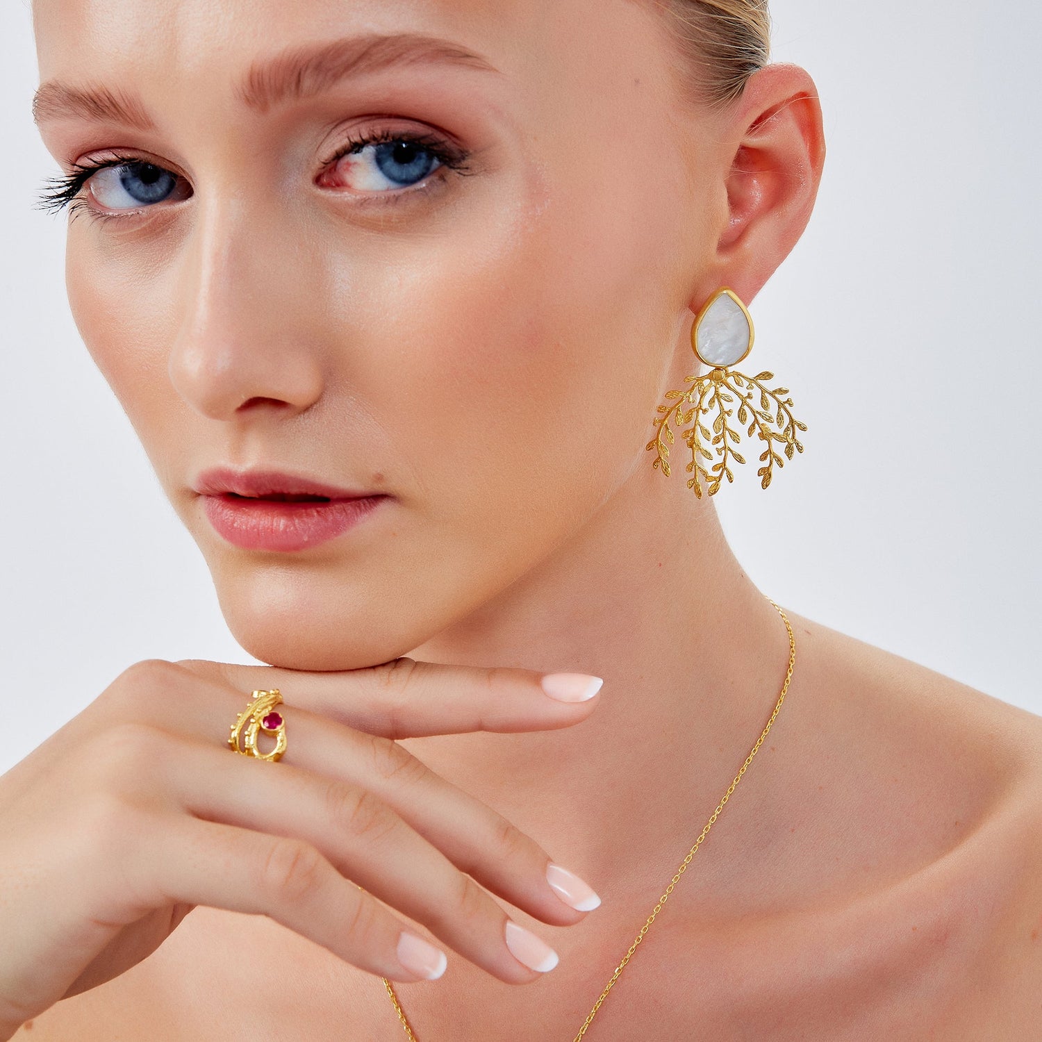 Mother Of Pearl Olive Branch Sterling Silver Statement Earring