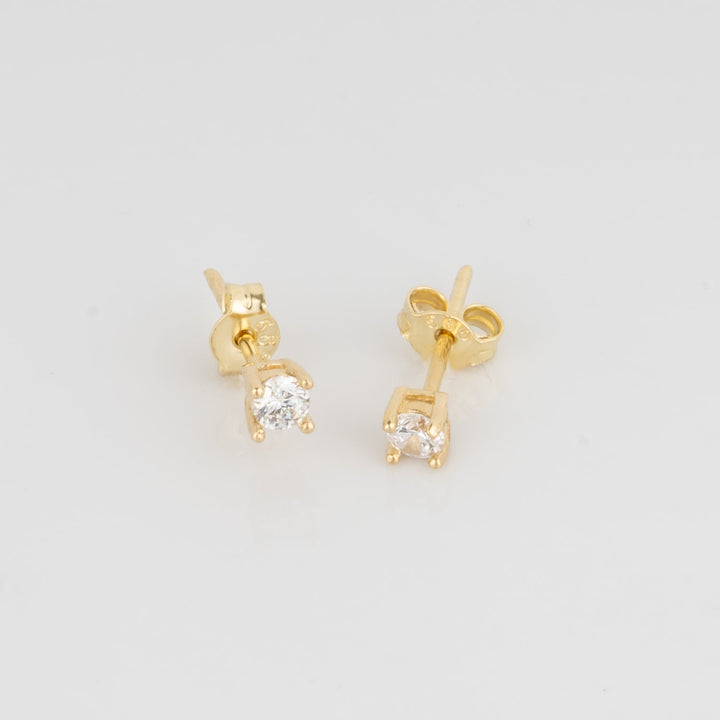 These stud earrings are crafted from 14ct solid gold and are 3mm in diameter.