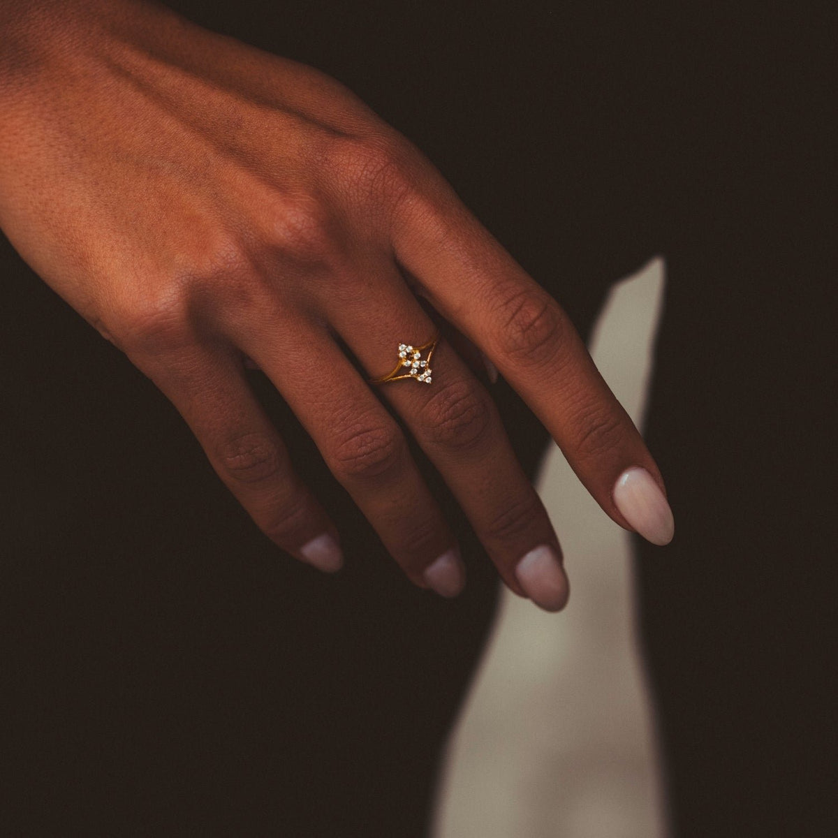 This 14Ct Solid Gold Double Row Cluster Ring by Spero London is a luxurious and timeless accessory. Crafted with high-quality 14k solid gold, the ring features a stunning double-row cluster design. This ring is designed to be worn effortlessly every day, adding a touch of elegance to any outfit.