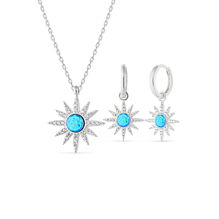 Blue Opal Sun Sterling Silver Necklace & Earring Set - Silver