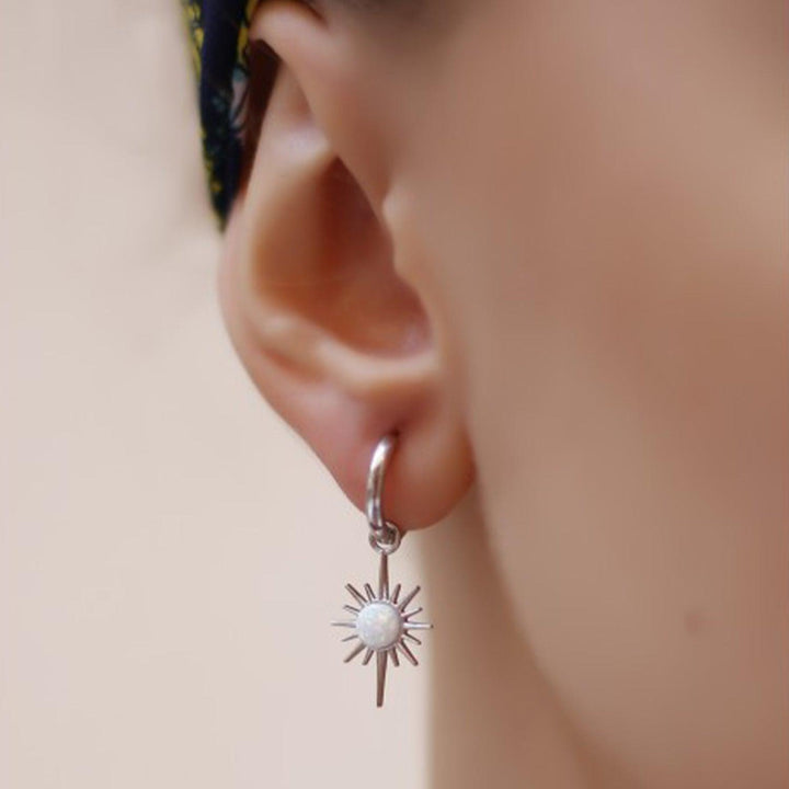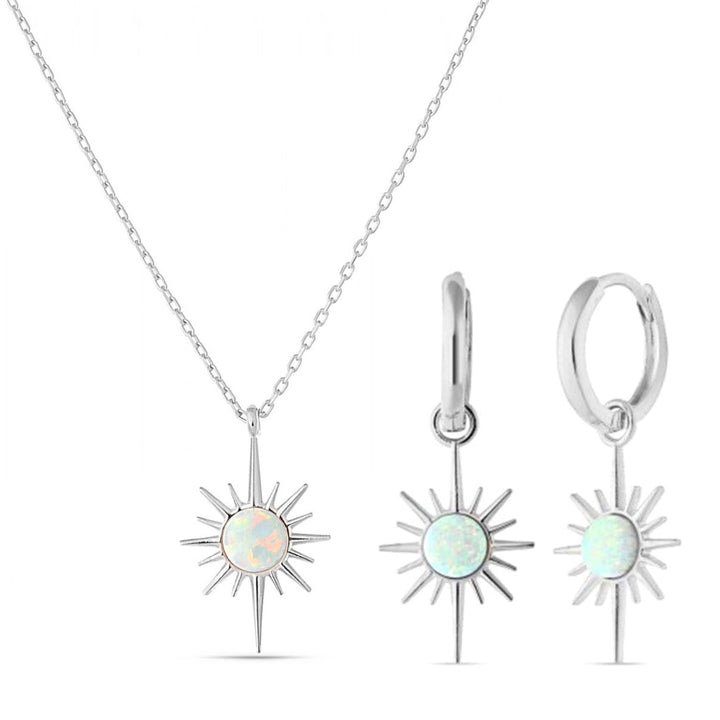 Opal Northernstar Drop Hoop Earring & Necklace Sterling Silver Set - Silver