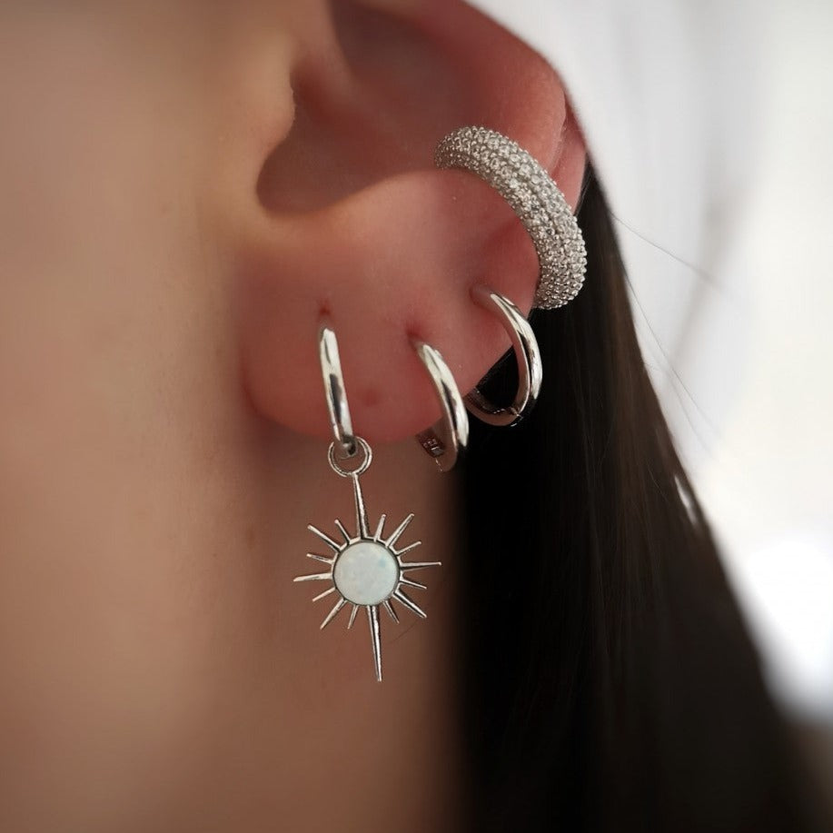 This set is made from 925 recycled sterling silver and features a twinkling star adorned with an opal stone drop.