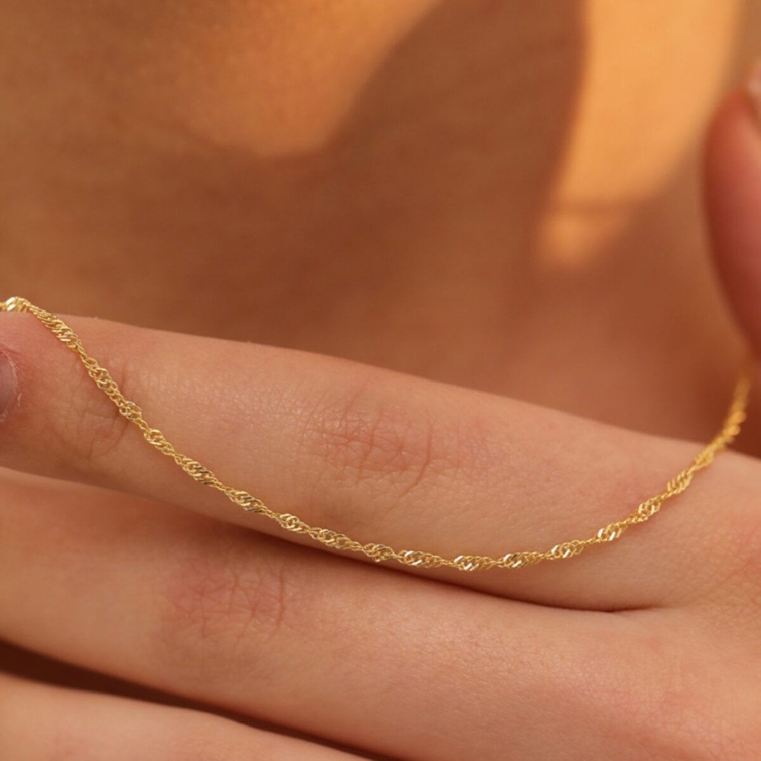9Ct Solid Gold Twisted Singapore Chain Necklace