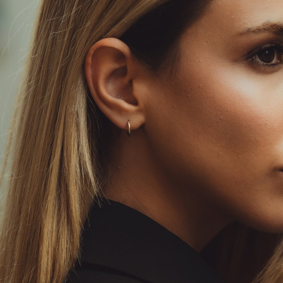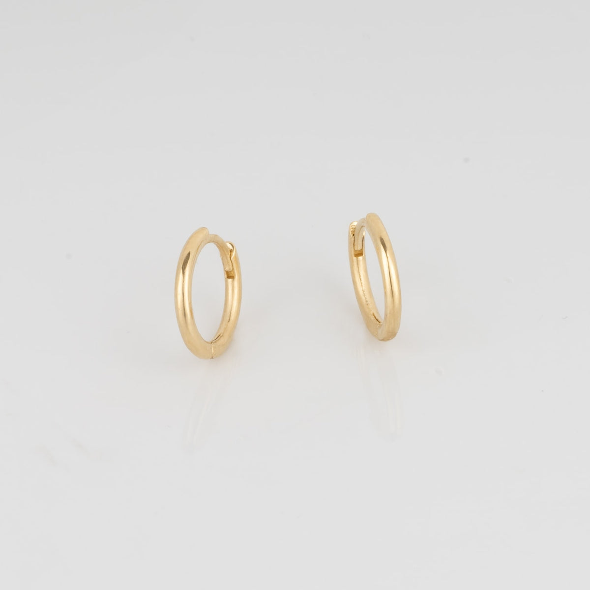 These earrings are crafted from 14ct solid gold. They weigh 1.3 grams, have a diameter of 12mm, and a thickness of 1.5mm.