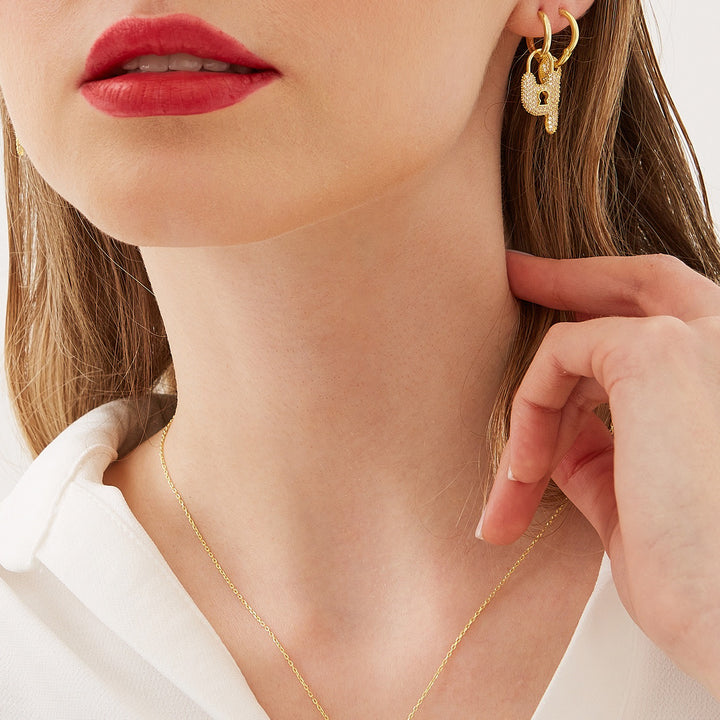 Key Gold Color Hoop Sterling Silver Earring - Silver