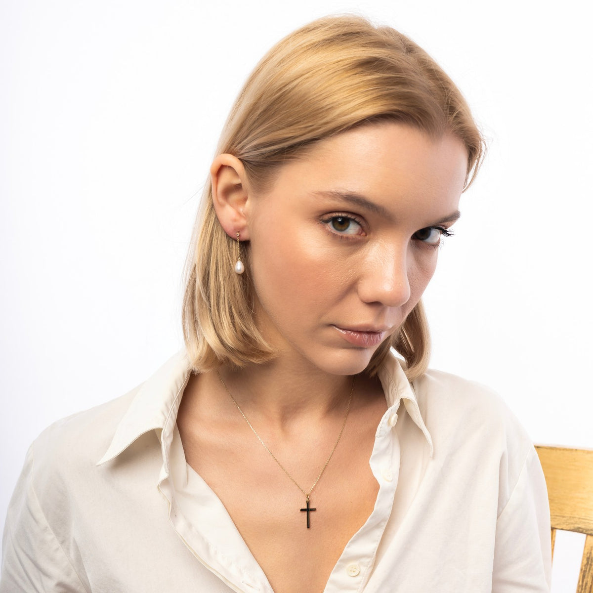 This Diamond Drop Real Pear Single Fine Earring by Spero London is a luxurious and timeless piece that blends classic elegance with a modern aesthetic. The genuine pearl and sparkling lab-grown diamond, set in 14ct solid gold, create a sophisticated and refined design. This single earring is perfect for adding a touch of subtle luxury and unique style to any look.