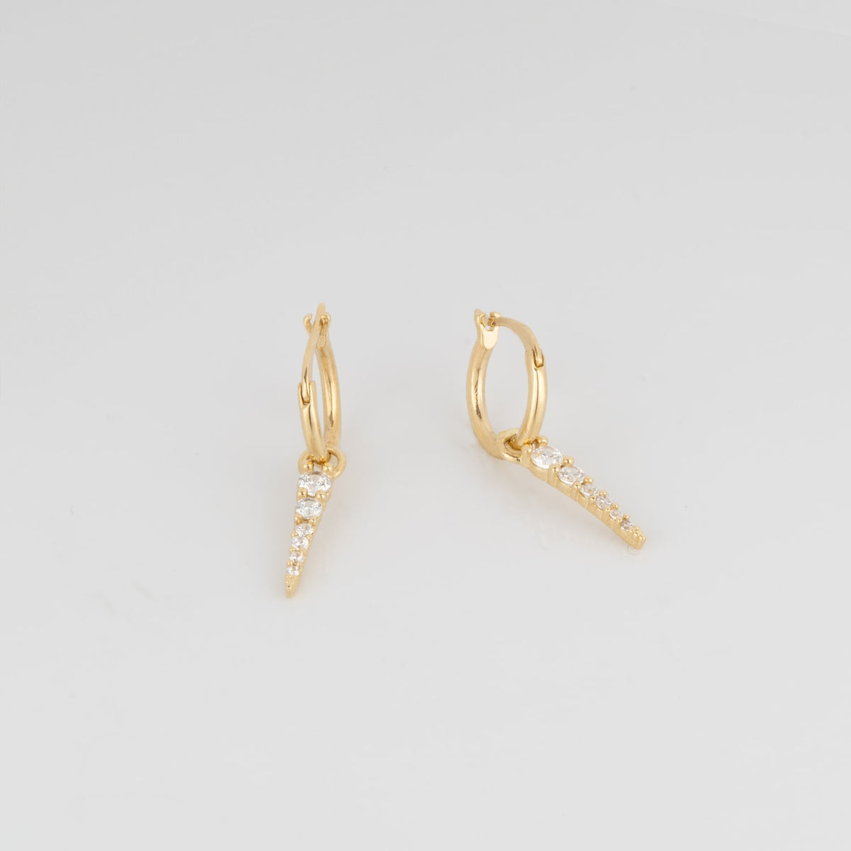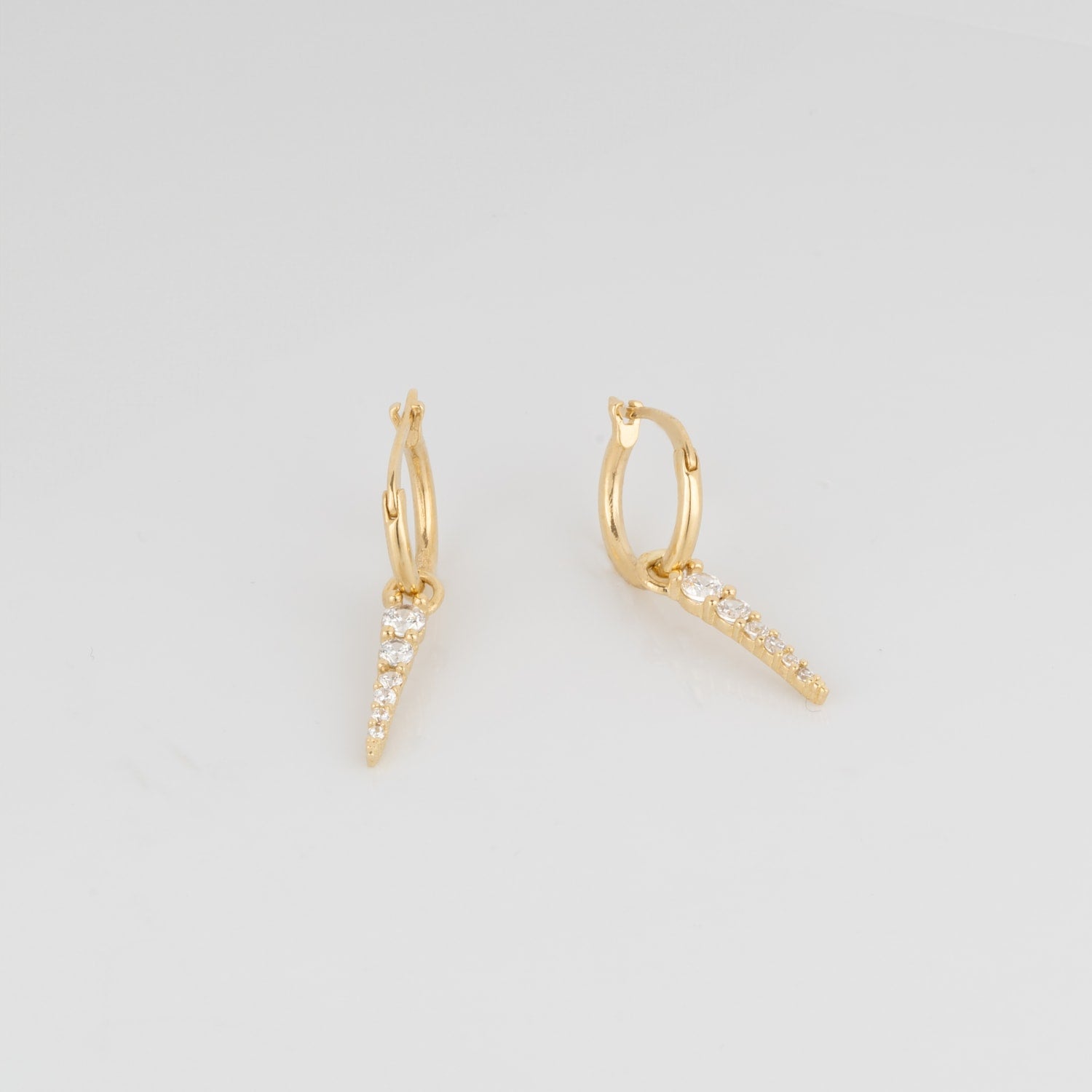 Fine Spike Pave Hoop Earrings 14K Solid Gold