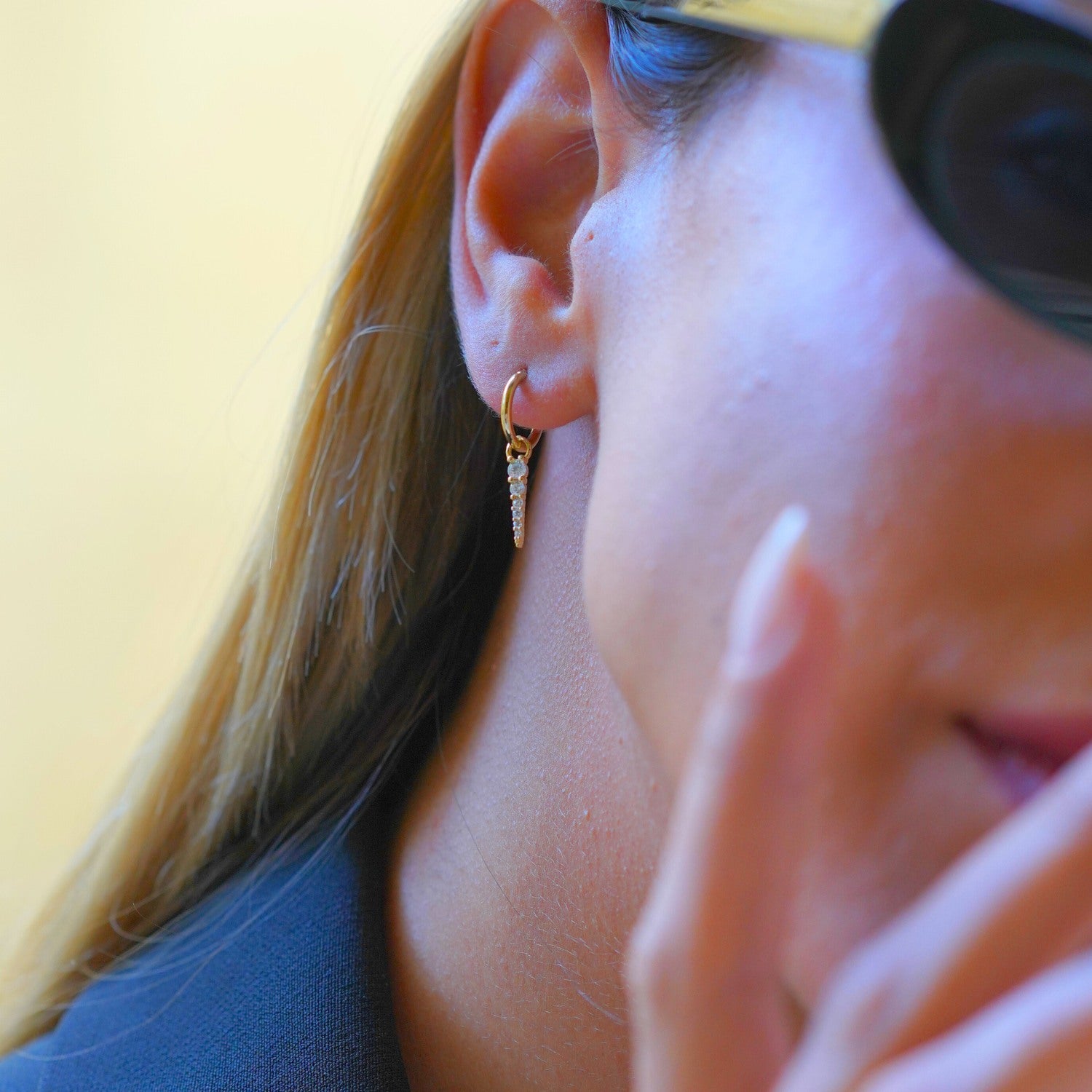These Fine Spike Pave Hoop Earrings by Spero London are a modern and luxurious accessory. Made from solid 14k gold, these sleek hoops are designed to last forever. They feature a separable hoop and a fine spike charm with pavé cubic zirconia, offering a touch of edge and sophistication. These earrings are versatile and enduring, perfect for everyday wear.
