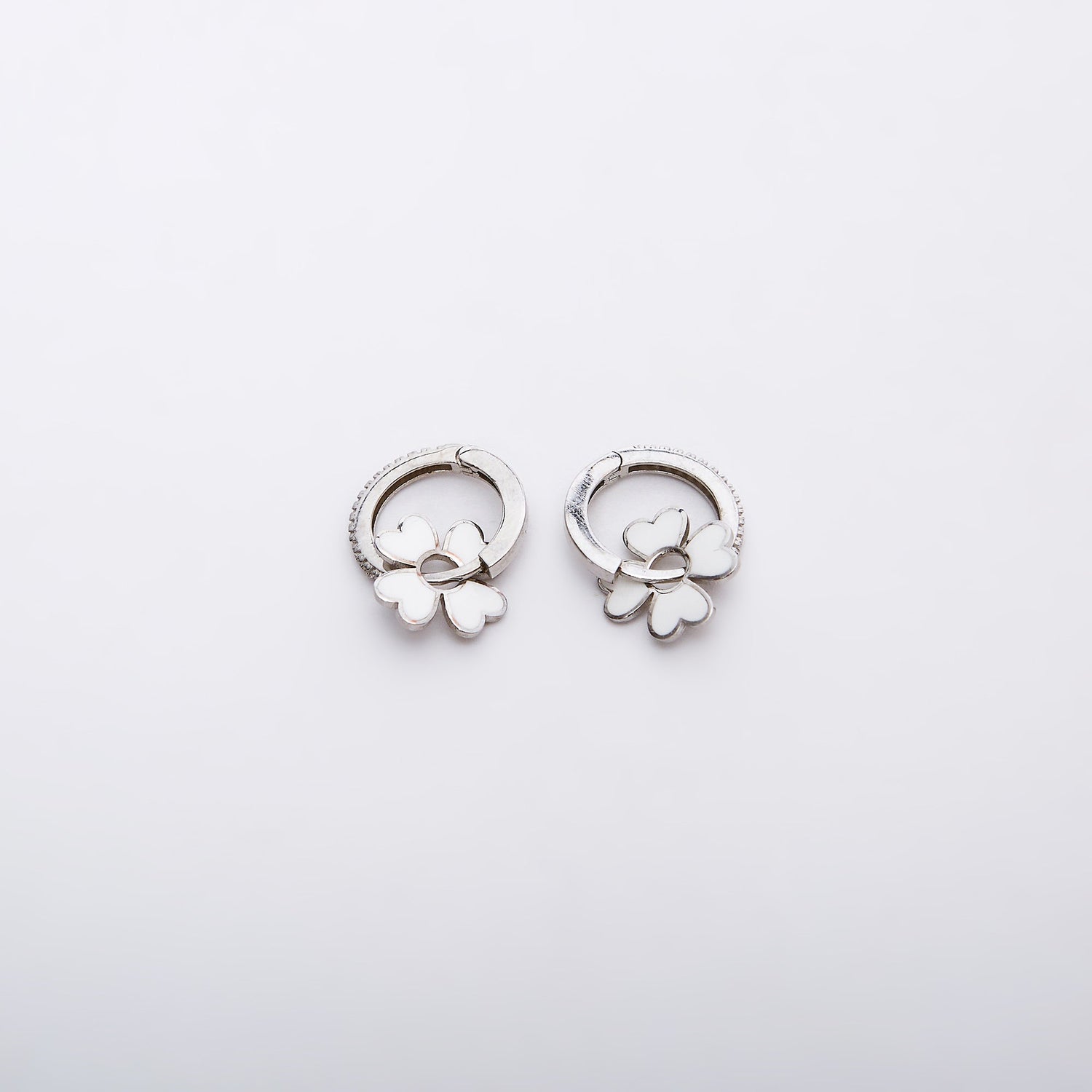 Sterling Silver Enamel Clover Earrings - White - Silver