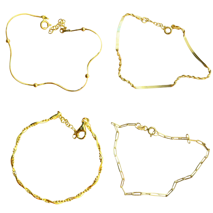 This set is made from recycled 925 sterling silver. The bracelets included are Chain Twisted Capita, Rectangular Chain, Italian Bead, and Semi Singaporean Bead. The Pearl Eye Bracelet shown in the image is not included.