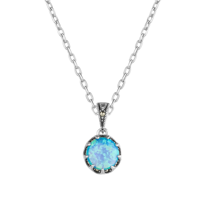 High Quality Round Opal Sterling Silver Pendant Necklace - Light Blue