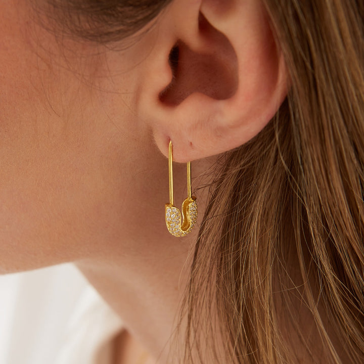 This necklace is made from 925 recycled sterling silver and features a safety pin pendant accented with pave cubic zirconias. It has an adjustable chain.
