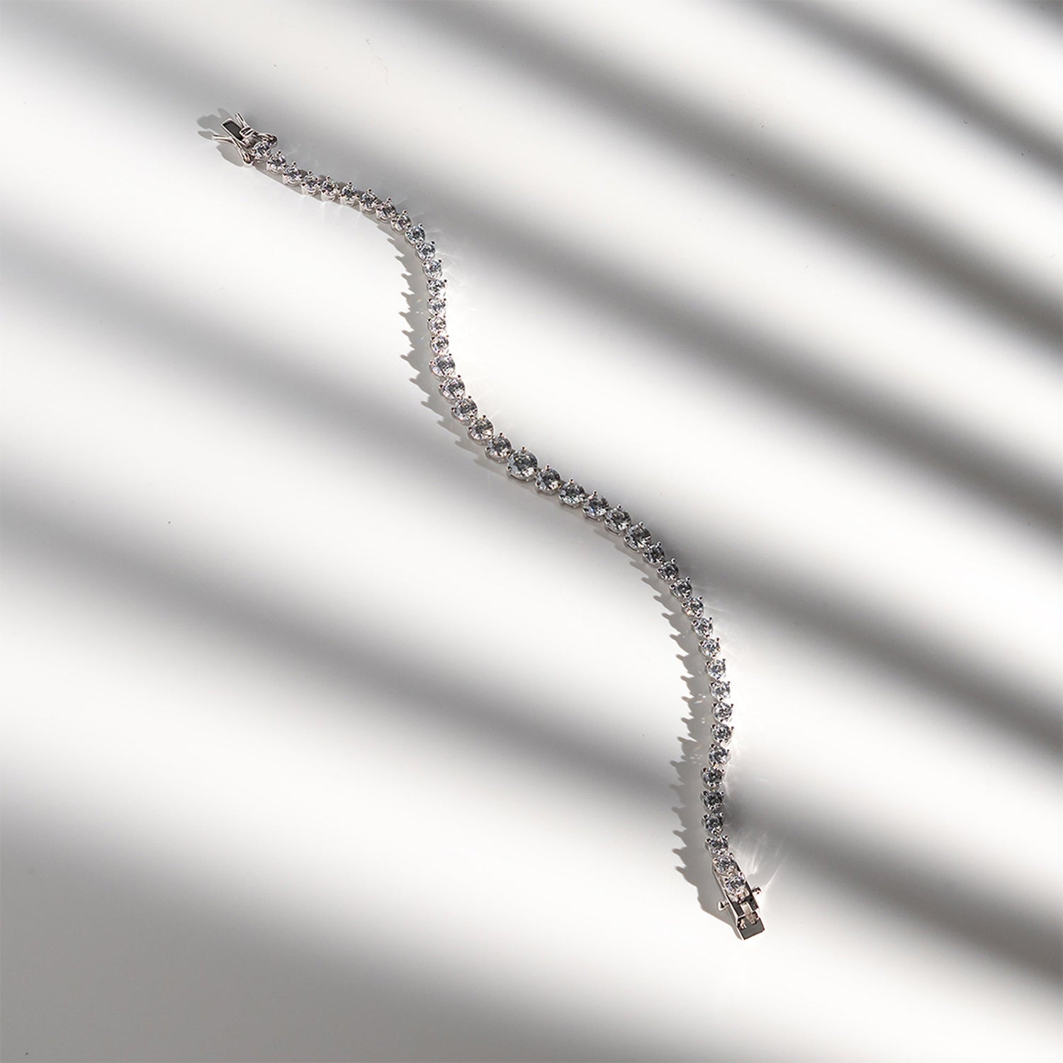 This bracelet is crafted from 100% fine sterling silver and features gradually sized gemstones.