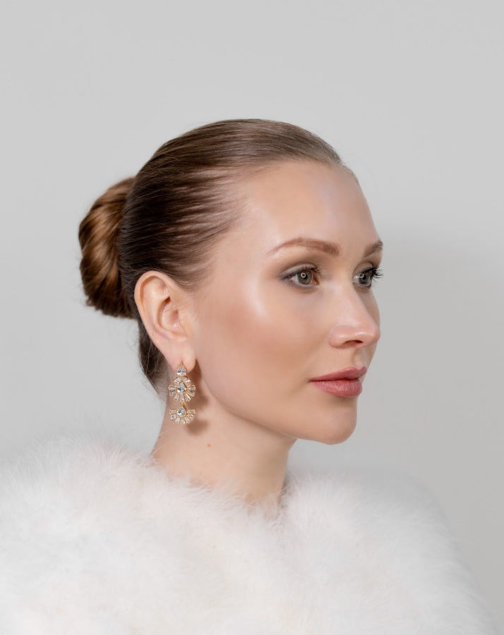 These Napier Earrings by Stephanie Browne Australia are a testament to the timeless elegance of the Art Deco era. The multi-faceted crystals are designed to reflect light and create a dazzling pattern, making them an elegant and stunning choice for any special occasion. These earrings are a symbol of enduring sophistication and grace.