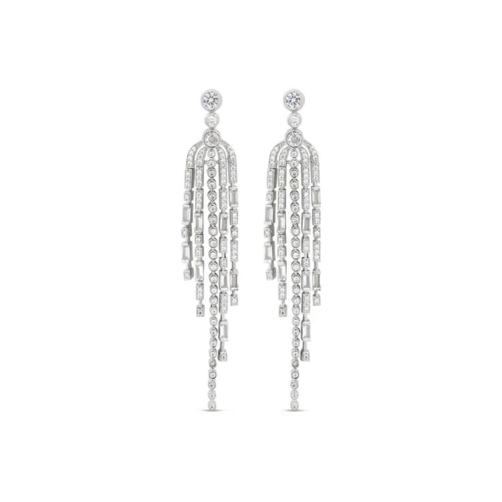 These Stellar Earrings by Stephanie Browne Australia are a subtle statement with a timeless style. Part of the New Era Collection, these Art Deco-inspired chandeliers are made with diamond-cut crystal and plated in precious metal rhodium. They are a beautiful choice for a wedding or any special occasion, adding a touch of elegance and sophistication.