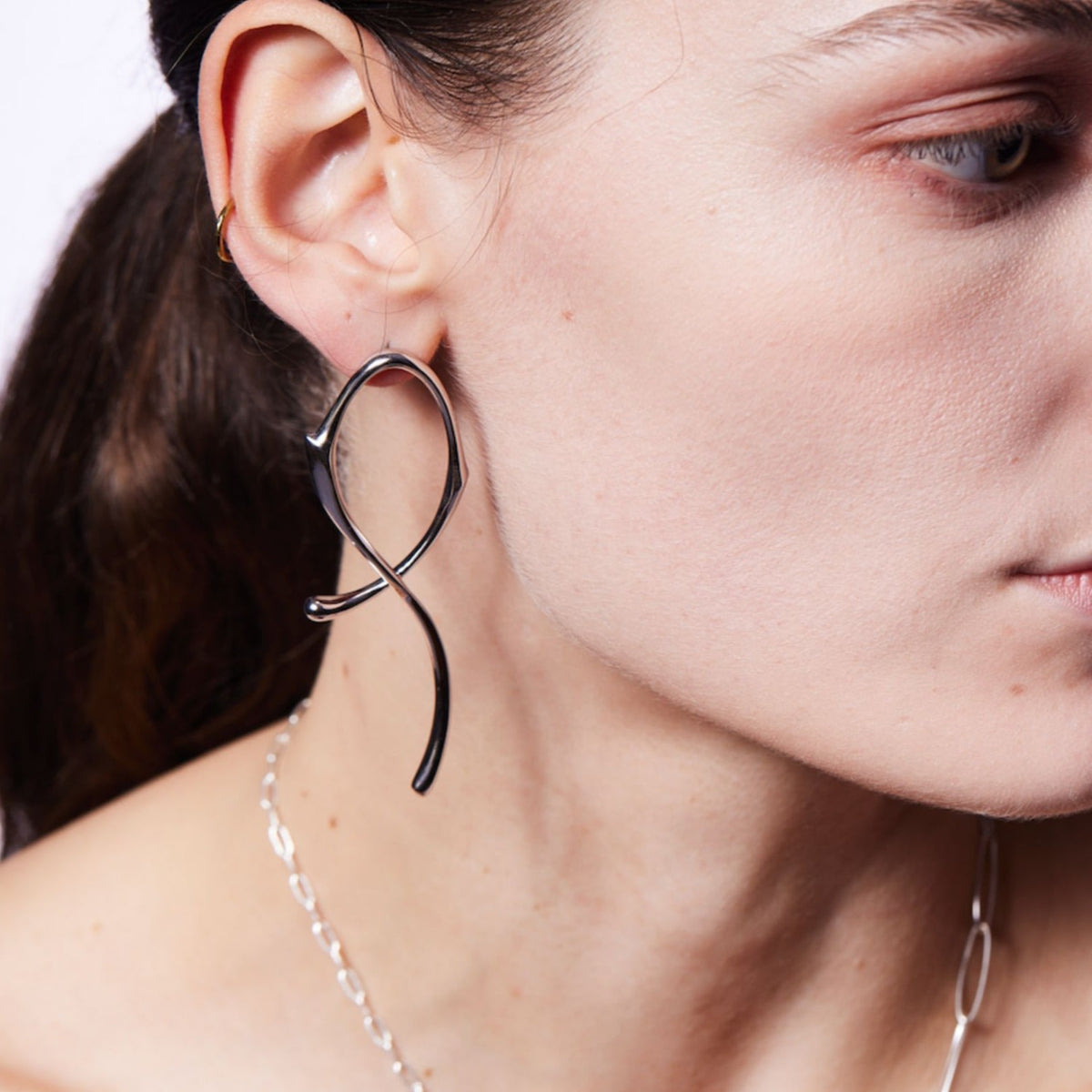 These Heradi Wave Eight White Gold Earrings by Tami&Tami are a unique and modern statement piece. The abstract, curvaceous design adds an artistic flair to your look. Perfect for those who love minimalist yet eye-catching jewelry, these earrings are a simple way to make a big statement.