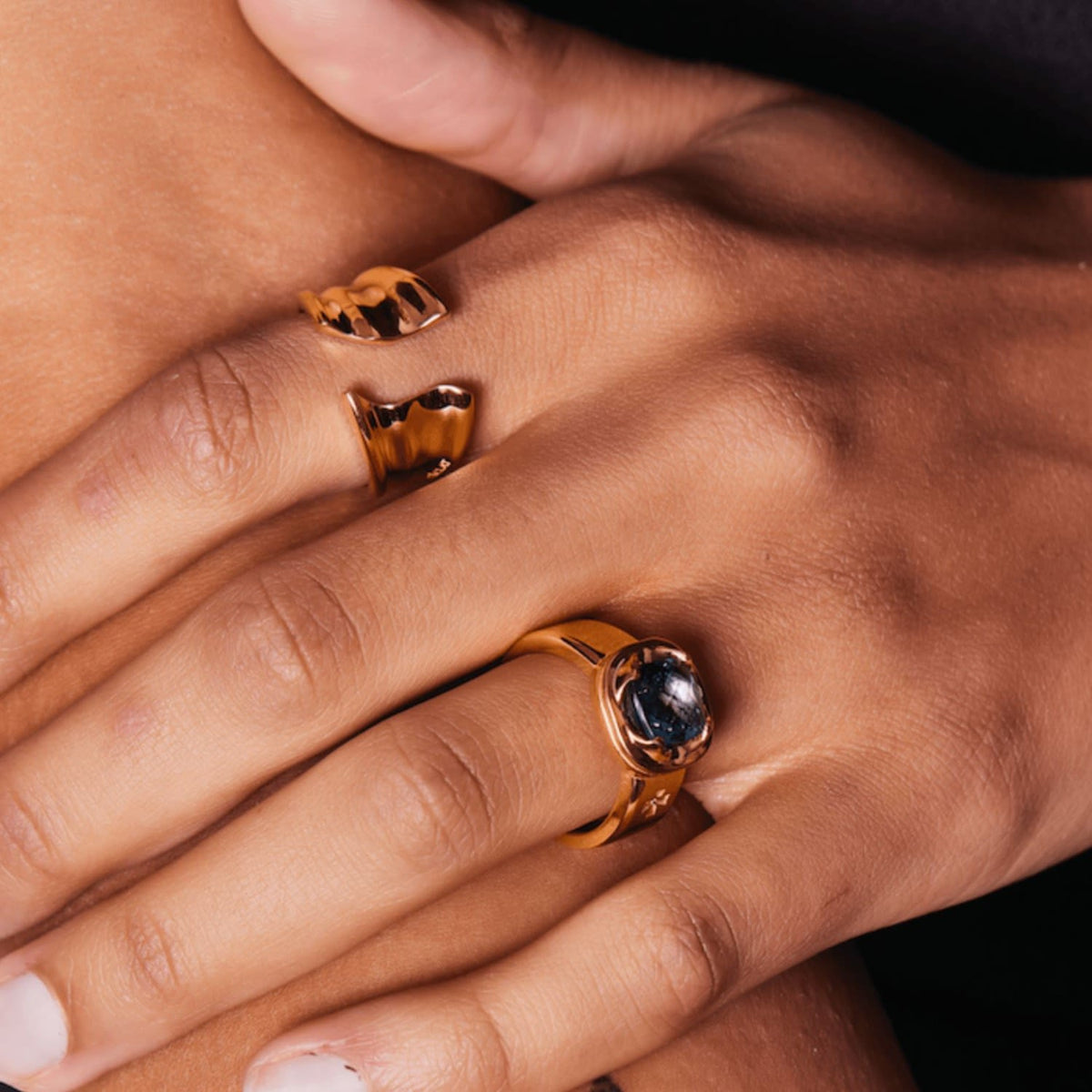 The Leclat Cushion Gold Ring by Tami&Tami is a bold and colorful accessory. This handcrafted ring is the perfect piece to add a pop of color to your outfit. Its modern design makes it suitable for everyday wear or for stacking with other rings to create a more dramatic look.