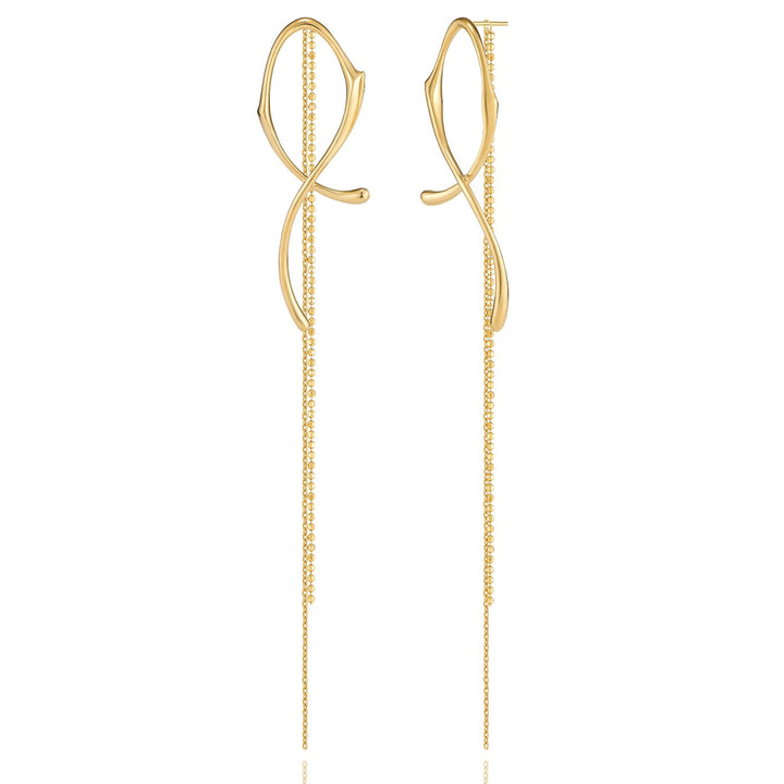 These dangle earrings are likely crafted from a base metal that is gold vermeil or gold-plated.