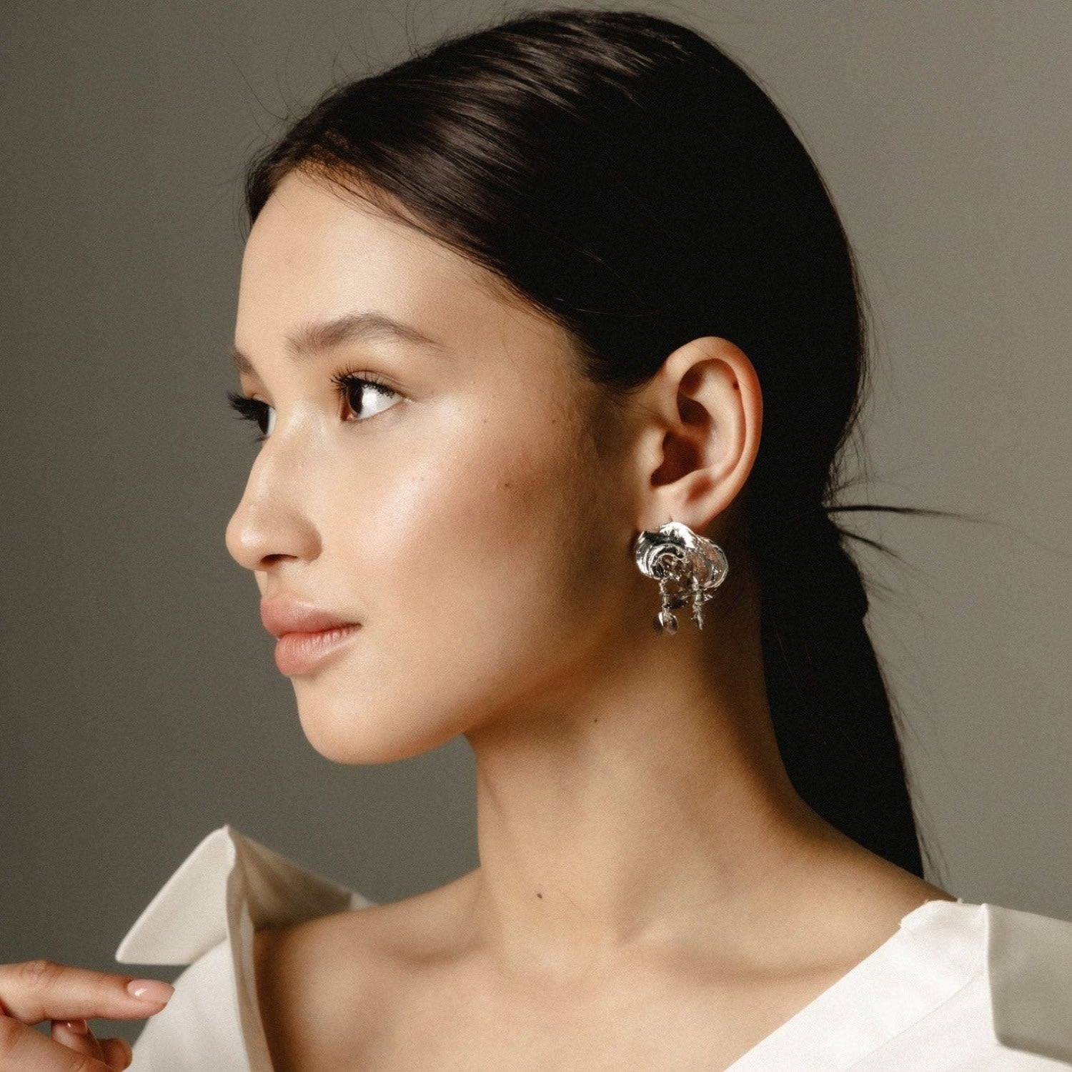 These Ten Sixty Four Studios Stud Silver Earrings by Tami&Tami are a beautiful and unique accessory for any outfit. Their asymmetrical shape and unique texture create a statement look, perfect for a chic weekend or evening ensemble. These earrings are a celebration of modern, artistic design.