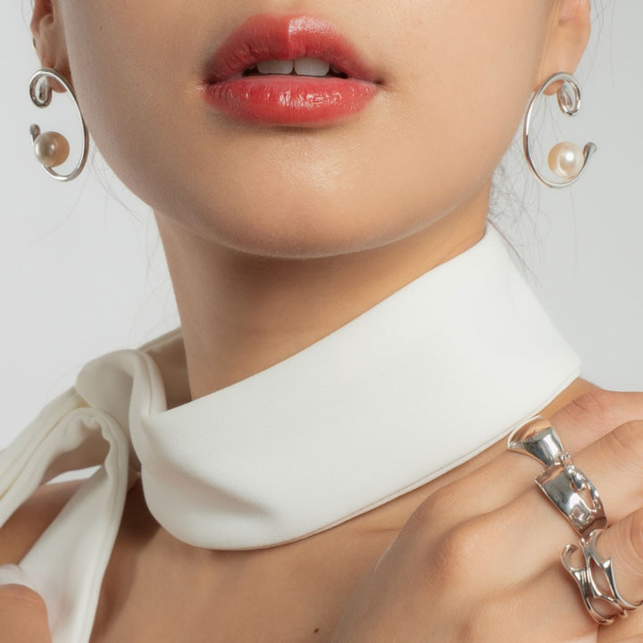 These Heradi Wave Two White Gold Earrings by Tami&Tami are a stylish blend of classic elegance and modern design. Crafted with a single pearl on a modern hoop, they add a touch of refined sophistication to any ensemble, perfect for both day and night.