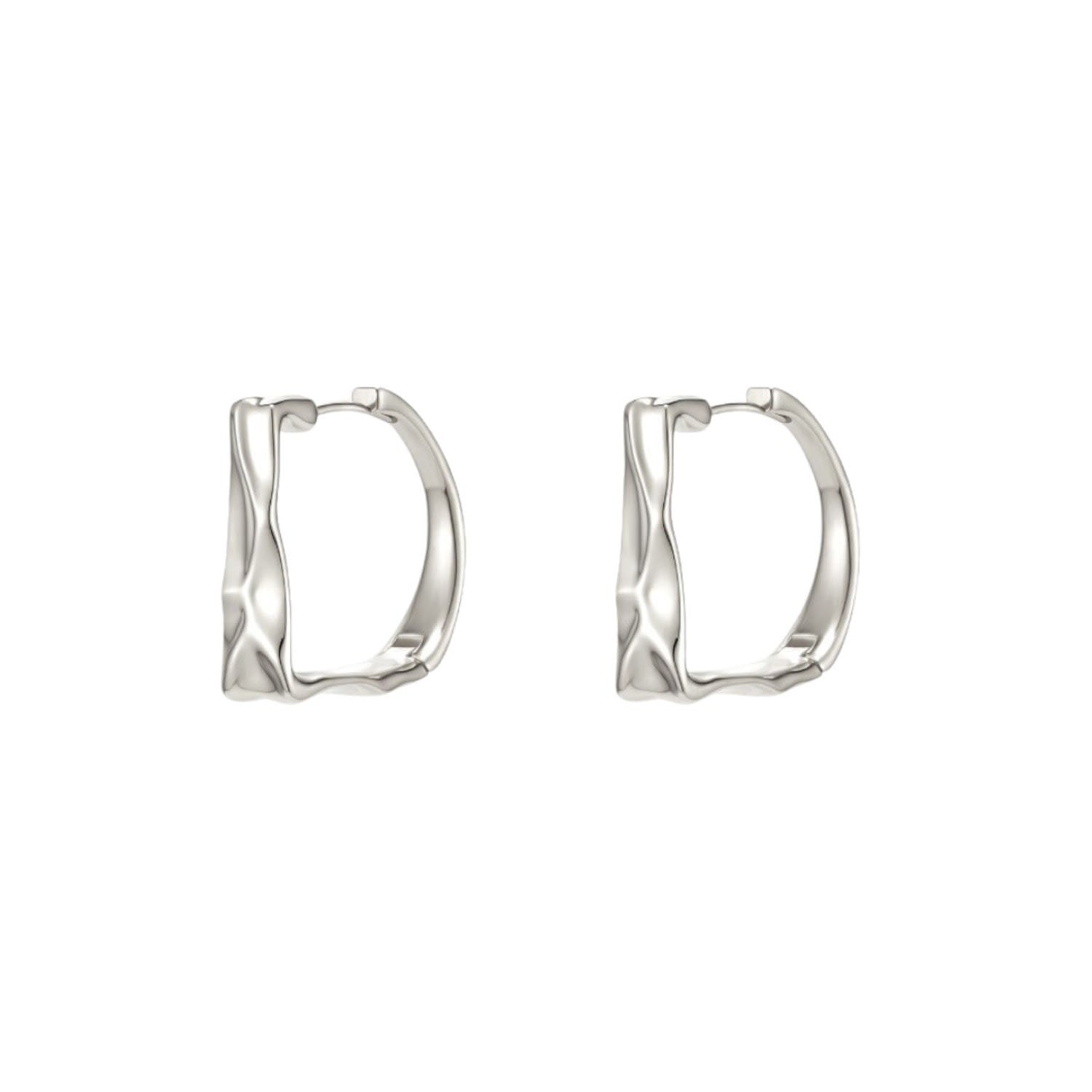 These hoop earrings are crafted from silver-plated metal and feature a D-shaped silhouette.