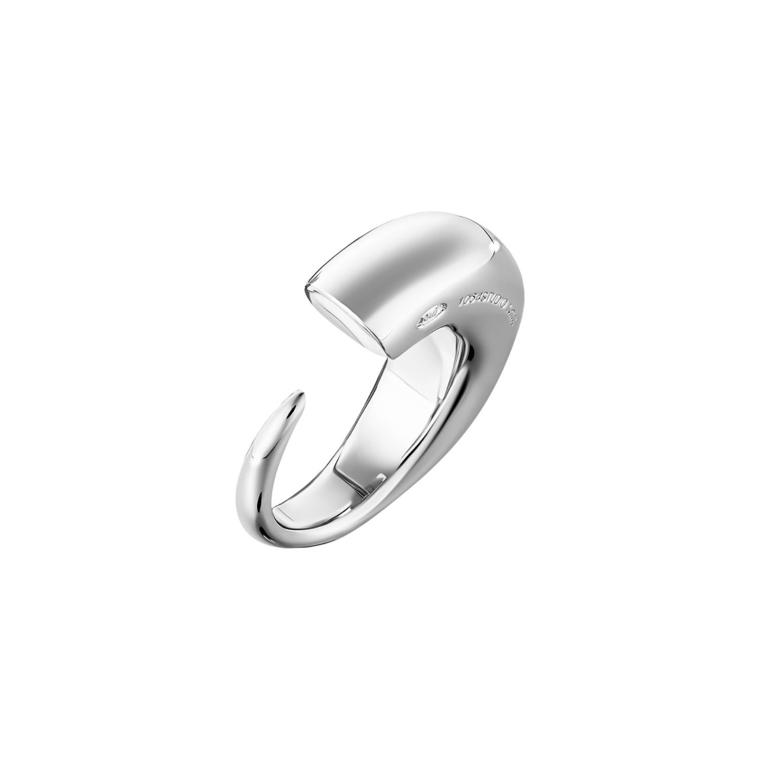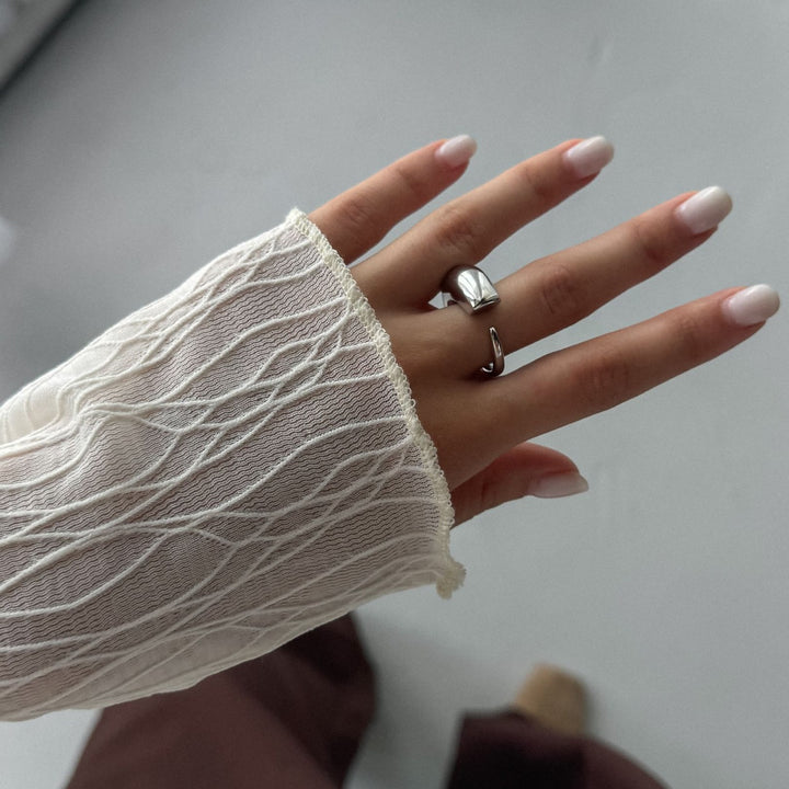 The Ten Sixty Four Studios Silver Horn Ring by Tami&Tami is a bold statement piece. Its polished finish and curved shape mimic the natural form of a horn, embodying boldness and elegance. This stacking ring provides a comfortable weight and is ideal for adding a touch of luxury to your everyday style.