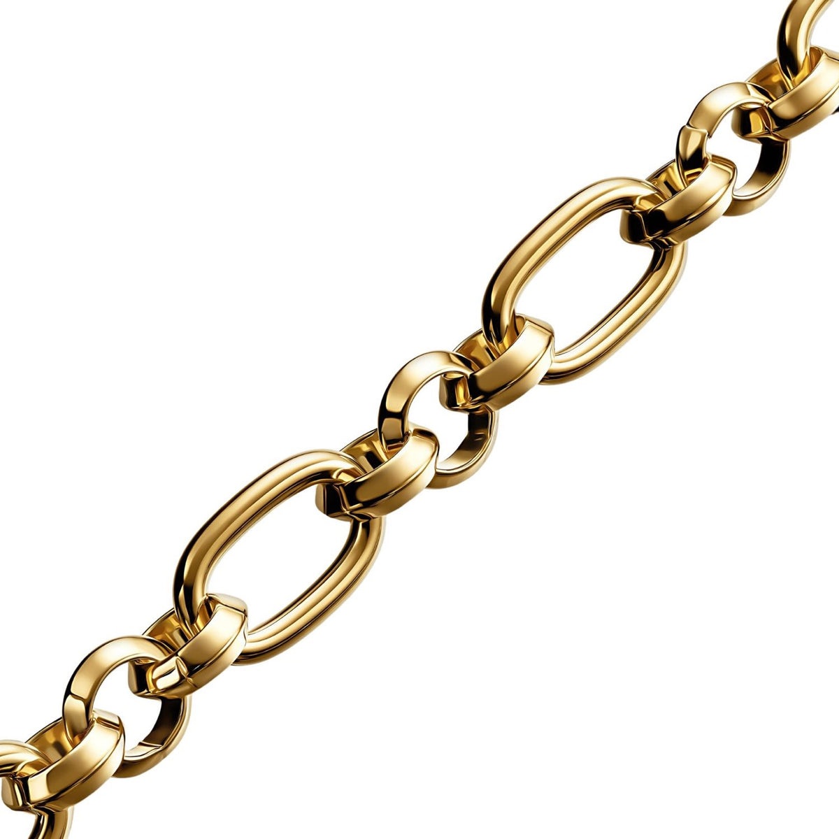 This chain necklace is gold plated. The specific base metal is not explicitly stated.