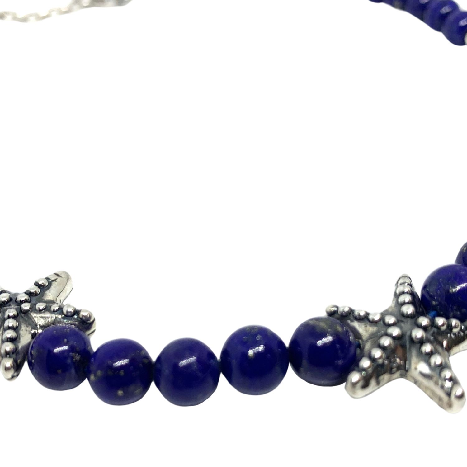 Starfish Lapis Beads Silver Necklace One Of A Kind