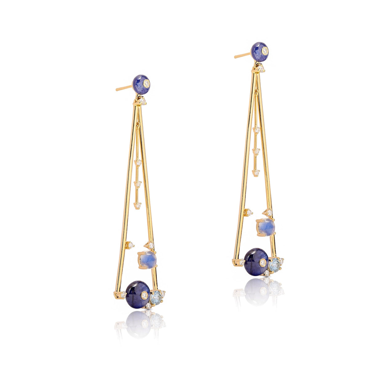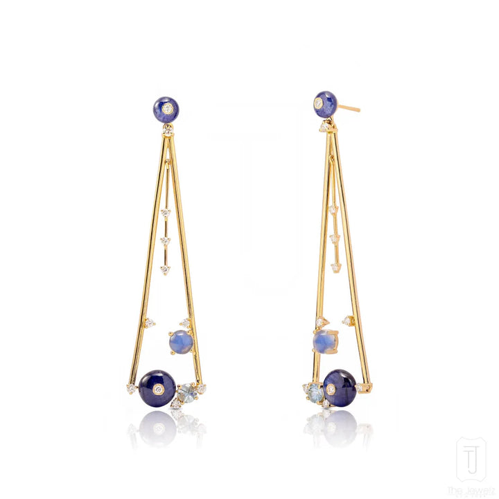 These dangler earrings are handcrafted from solid gold with a metal weight of 9.28 grams.