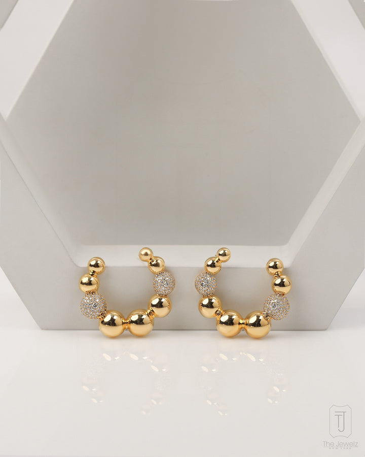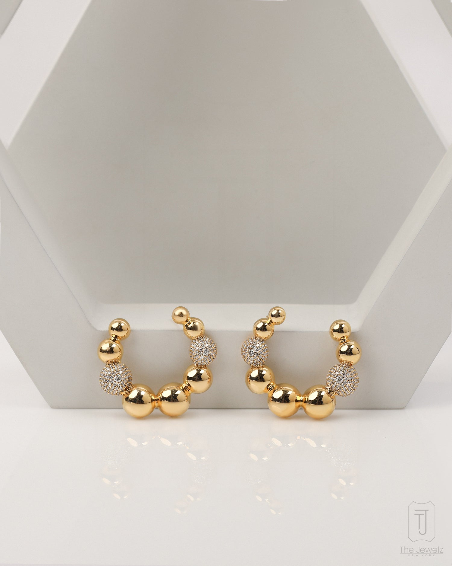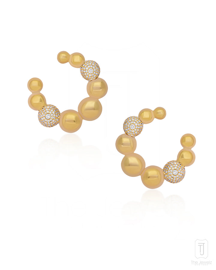 These fine earrings are made of solid 14K Gold. They are adorned with golden spheres and embedded with diamonds.