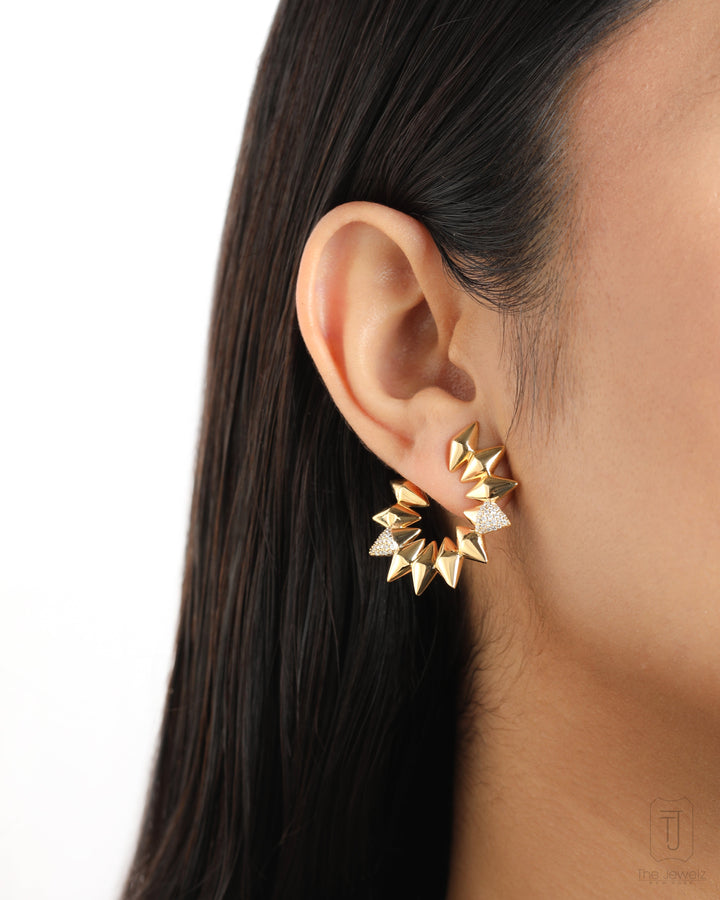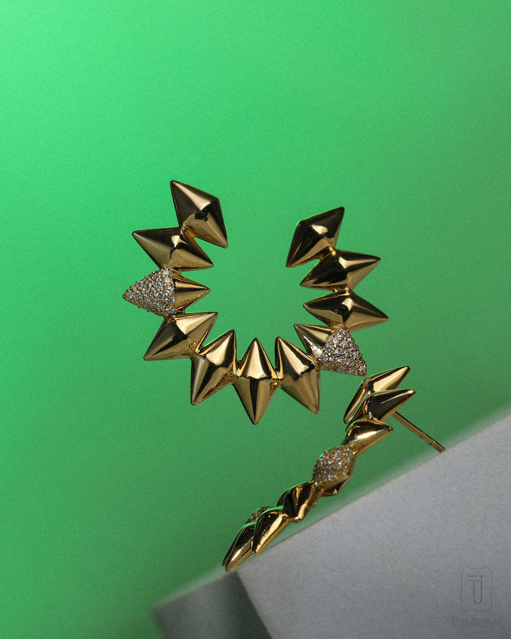 These 14K Gold Imperii Forma Hoop Lightweight Earrings by The Jewelz are a masterclass in effortless style. Inspired by the Roman pantheon, these hoops have a bold, sculptural design that evokes a sense of power without the weight of solid gold. They are a statement piece that speaks for itself, perfect for when you want your jewelry to make an impression without saying a word.