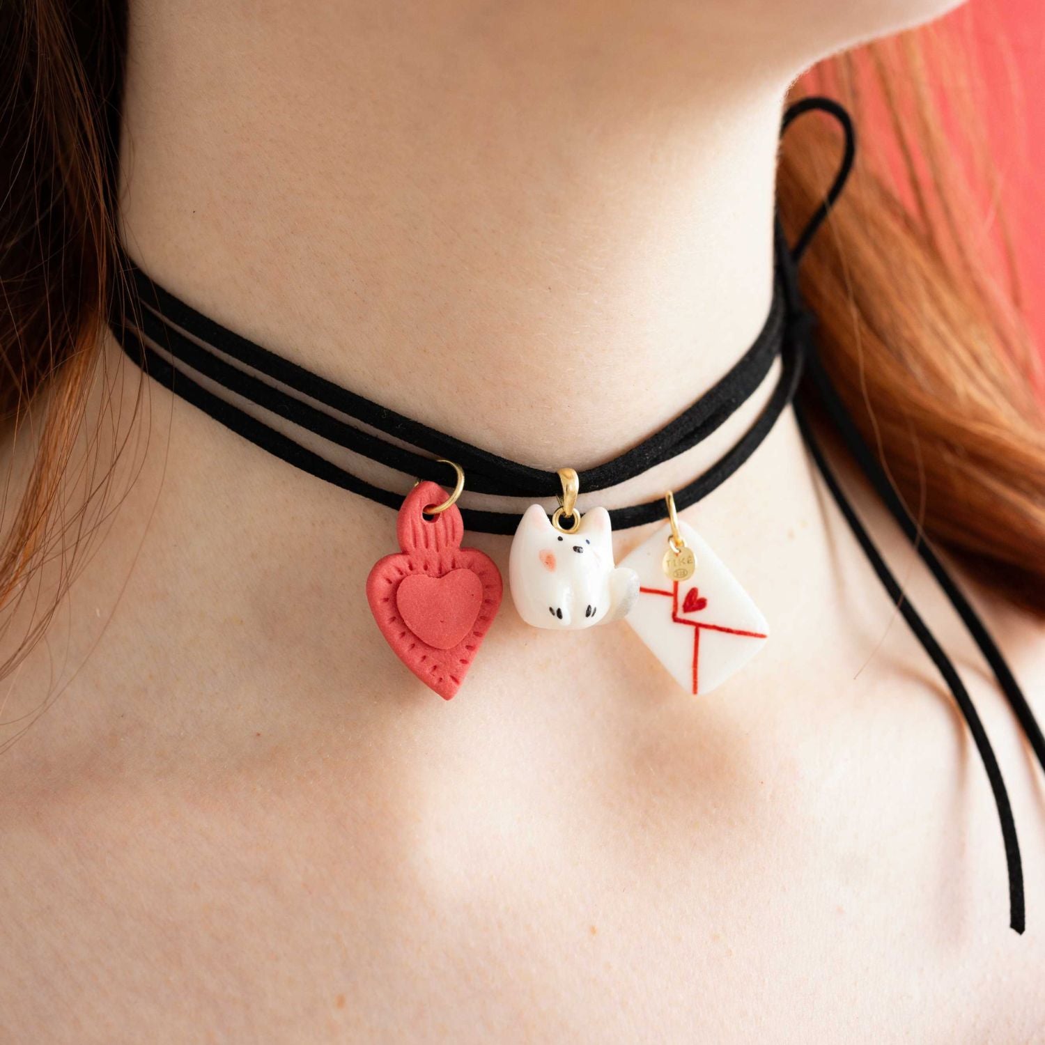 This choker is made with a handmade porcelain cat-shaped pendant and 925 sterling silver.