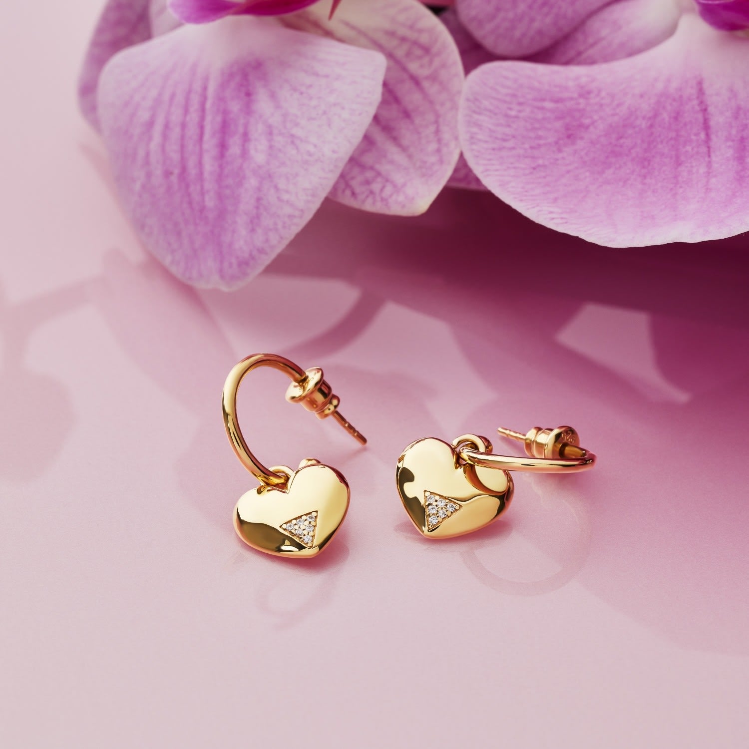 Art Deco Hearts Hoops - Gold Vermeil & Cubic Zirconia