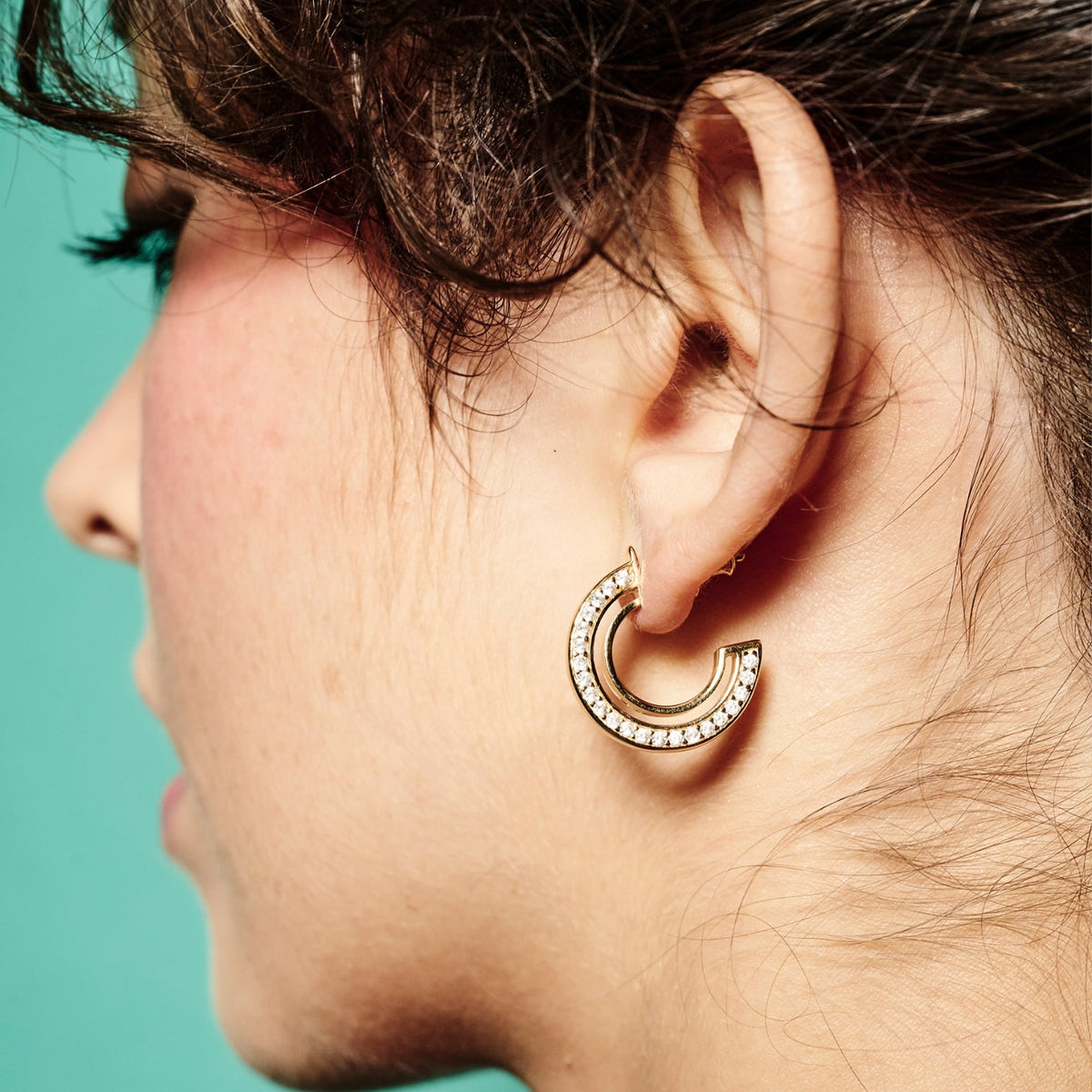 Small Double Hoop Earrings - Gold Vermeil & Cubic Zirconia