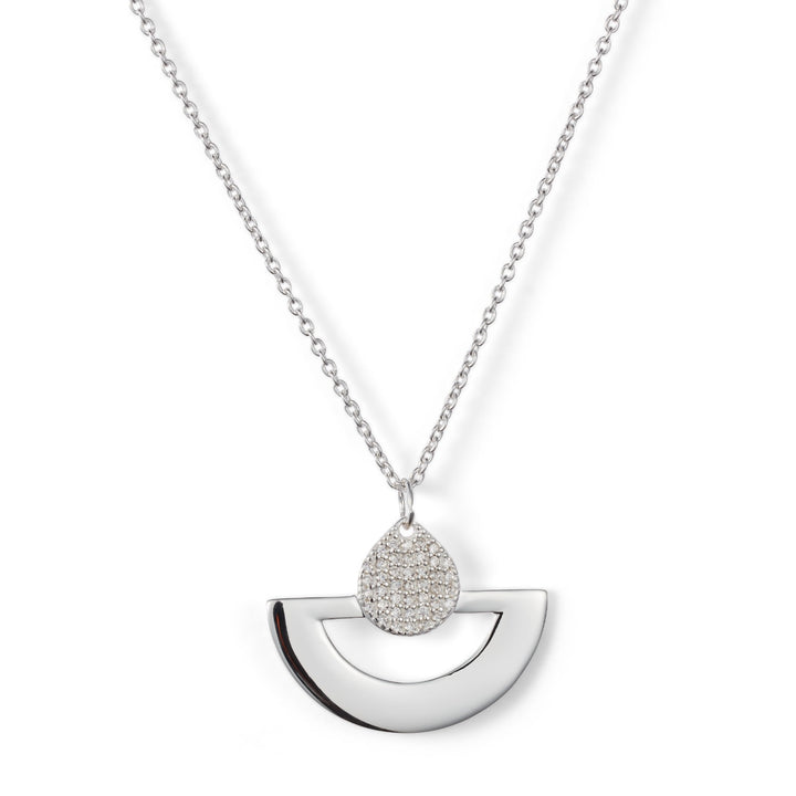This pendant necklace is cast in recycled 925 sterling silver and features a sparkling pavé element.